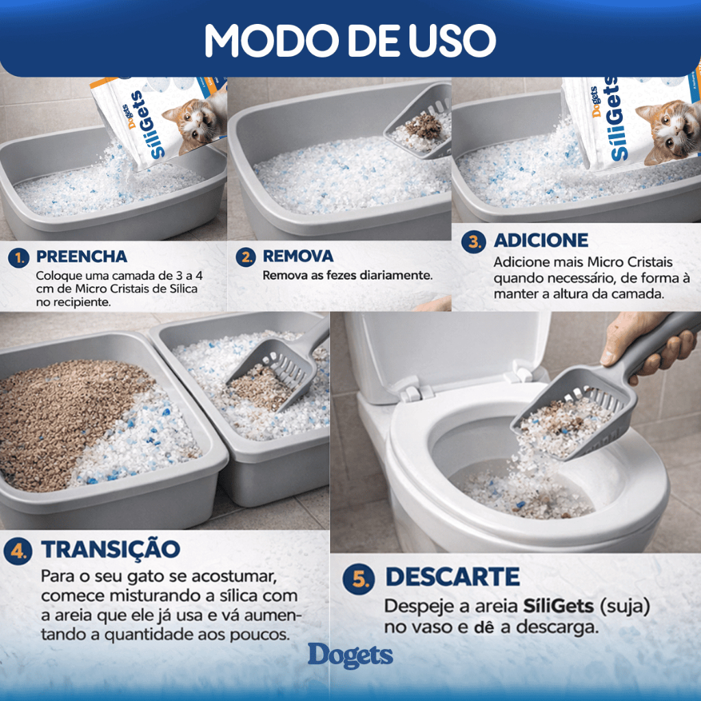Areia para Gato Silica 1,6kg Cristais Finos Higiênica Premium Sanitária