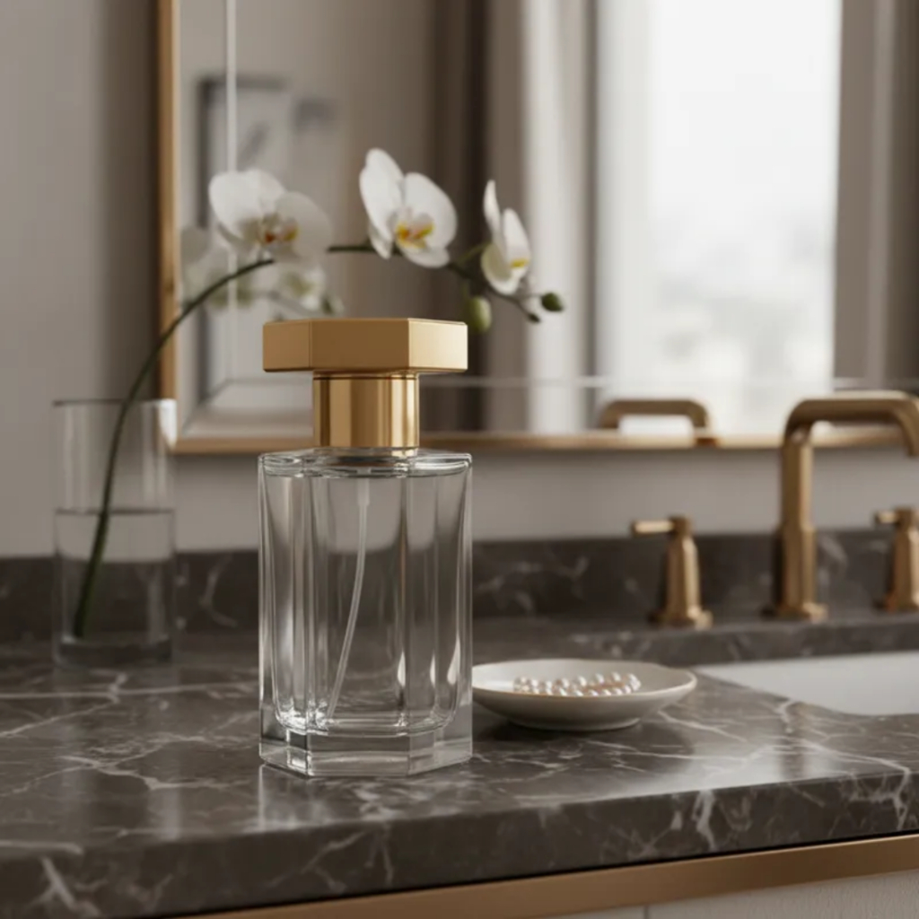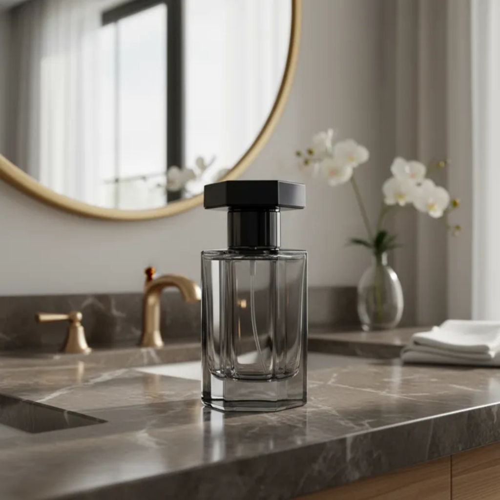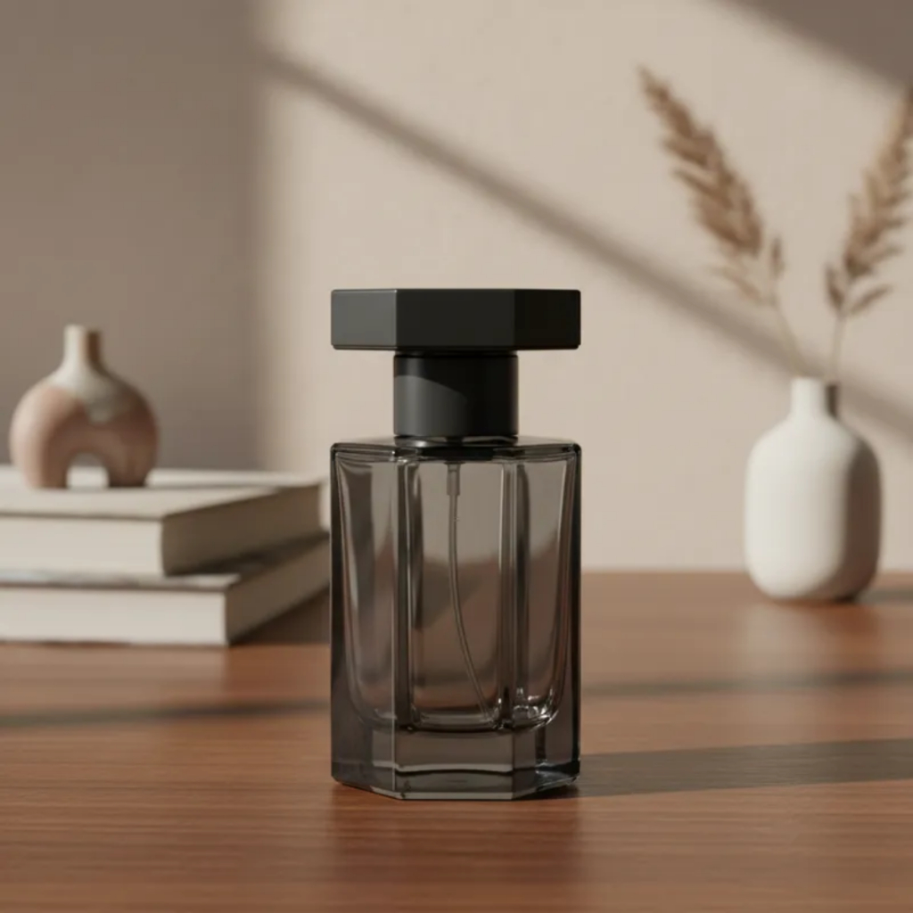 Kit Frasco Perfume Blue Cristal Fumê Grafite 50ml Válvula Tampa Luxo Rosca 15/400 Perfumaria Fina