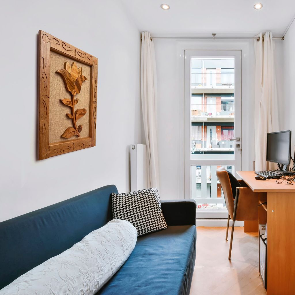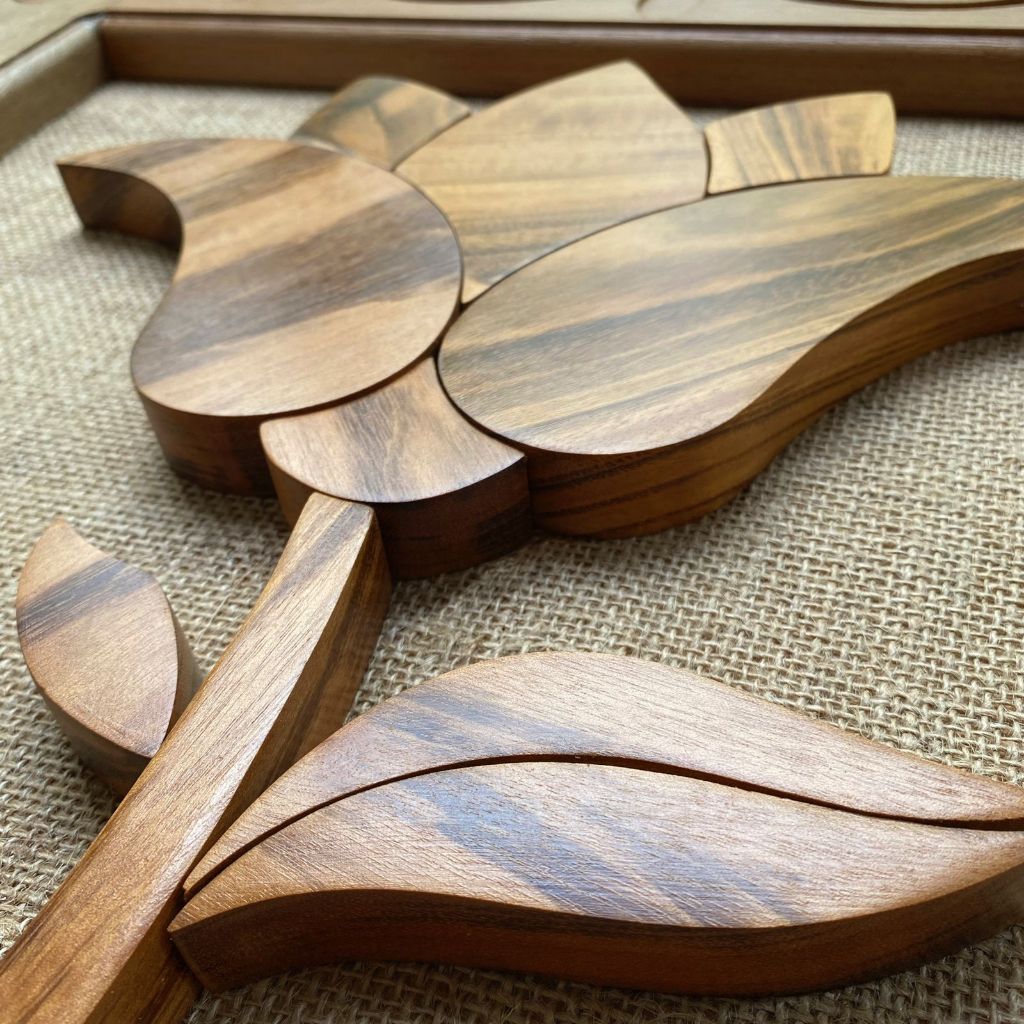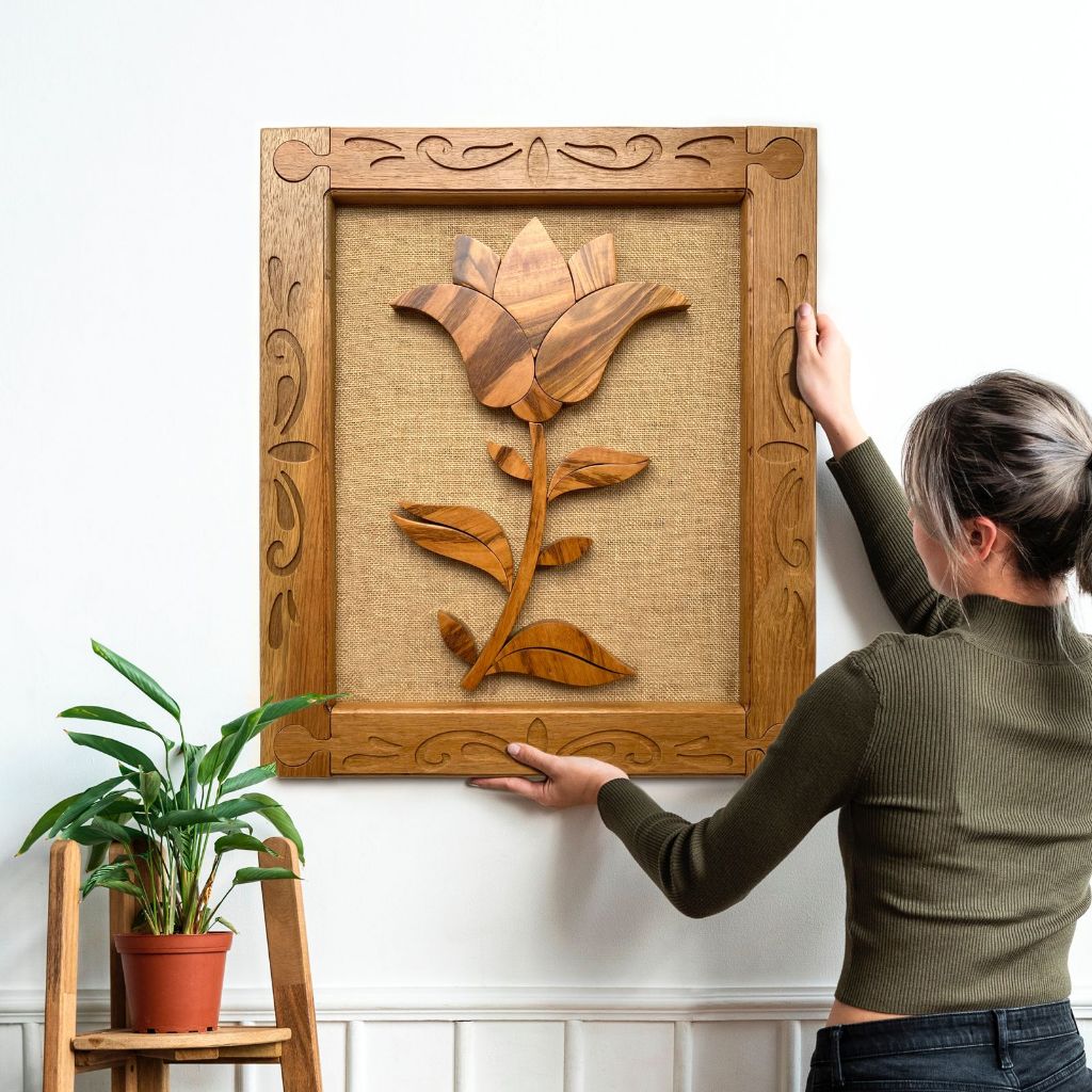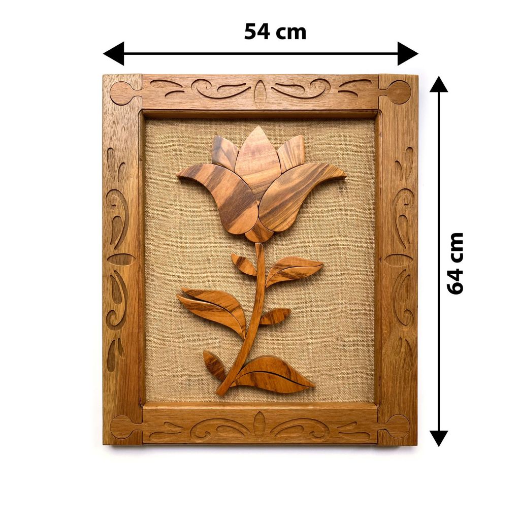Quadro Decorativo Artesanal Flor De Lótus Em Madeira Maciça Grande 64x54cm