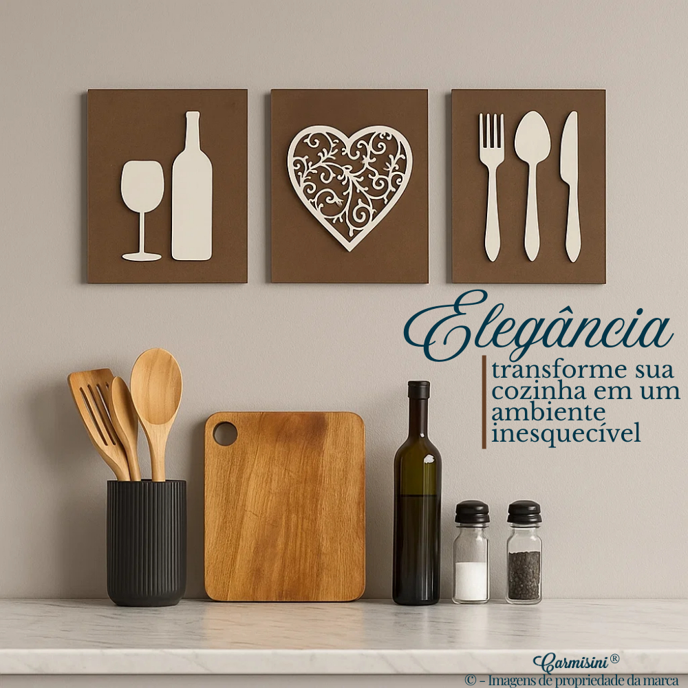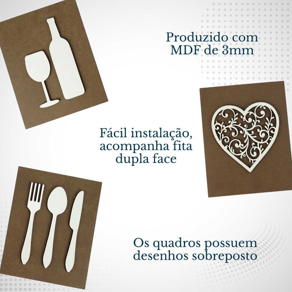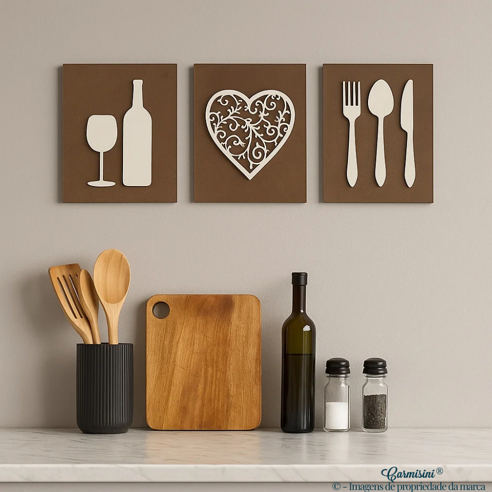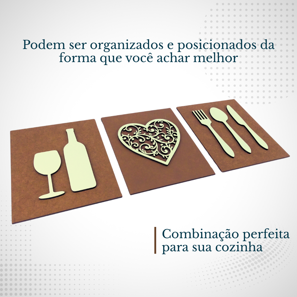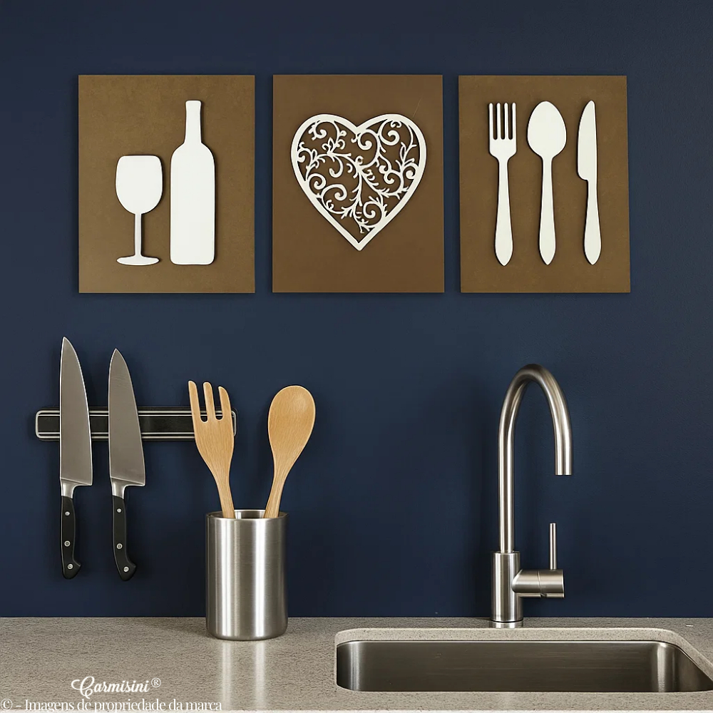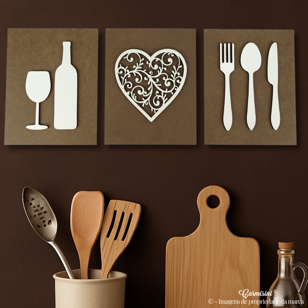 Kit Quadros Decorativos Para Cozinha Café Decoração Talheres e Bebida Composição Parede