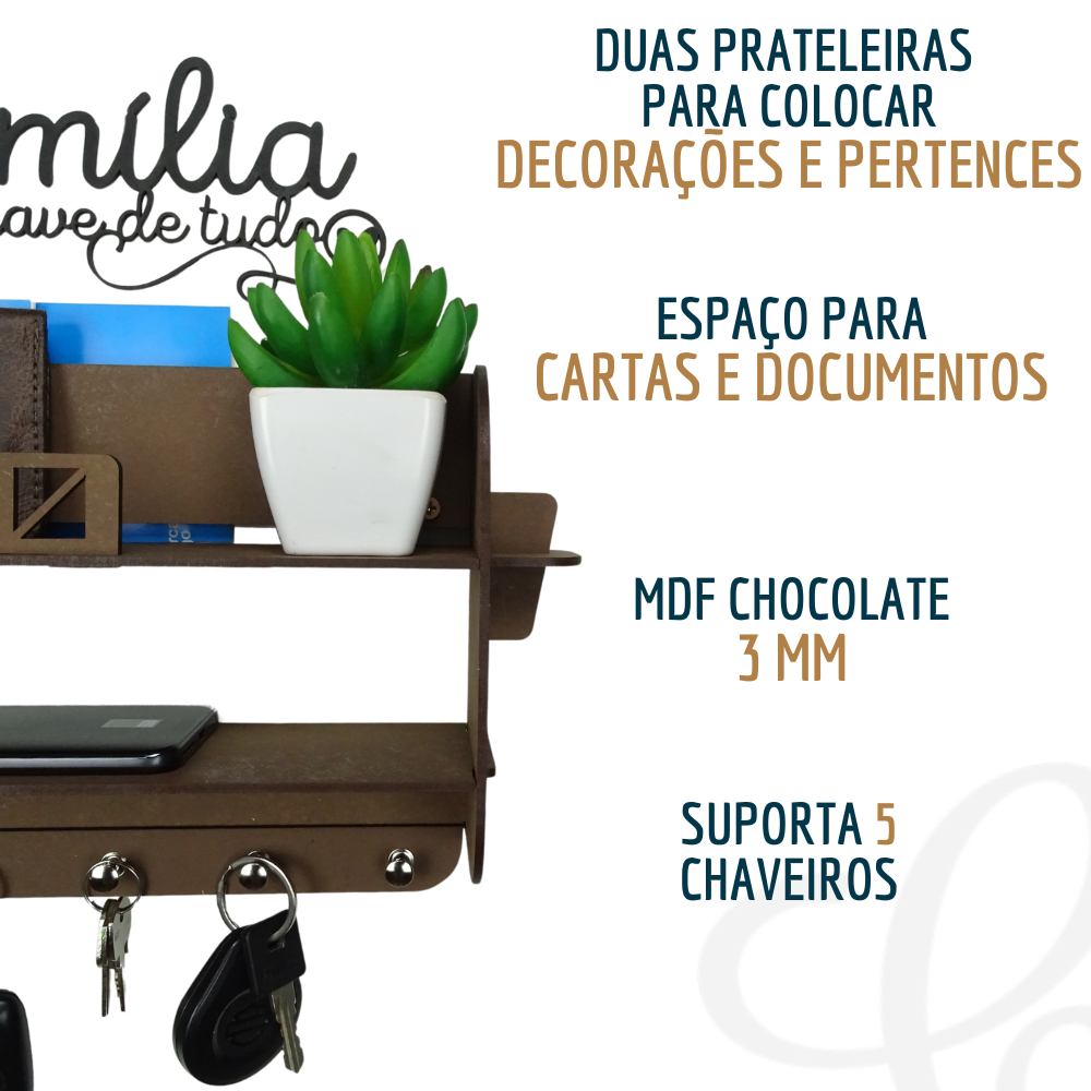 Porta Cartas e Chaves Organizador De Parede Com Prateleira Porta Chaves com Prateleira