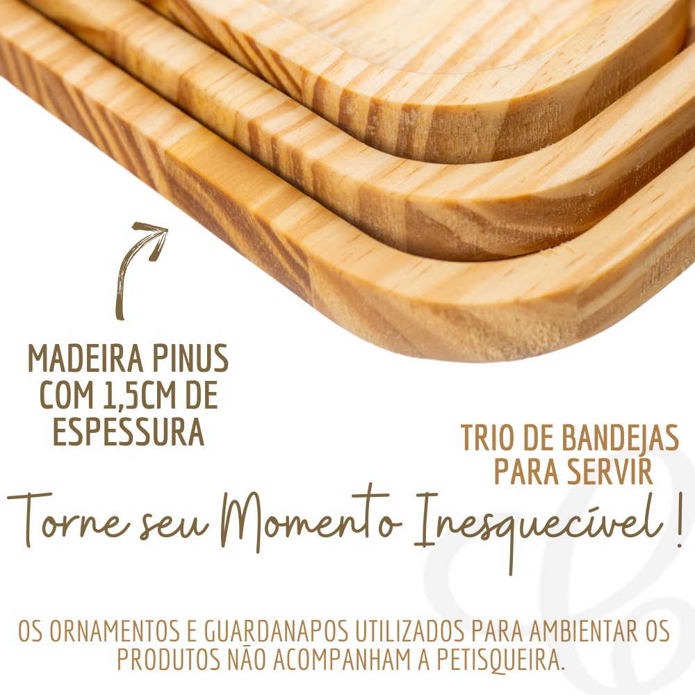 Kit Petisqueira Madeira Tábua de Servir Frios e Frutas Luxo