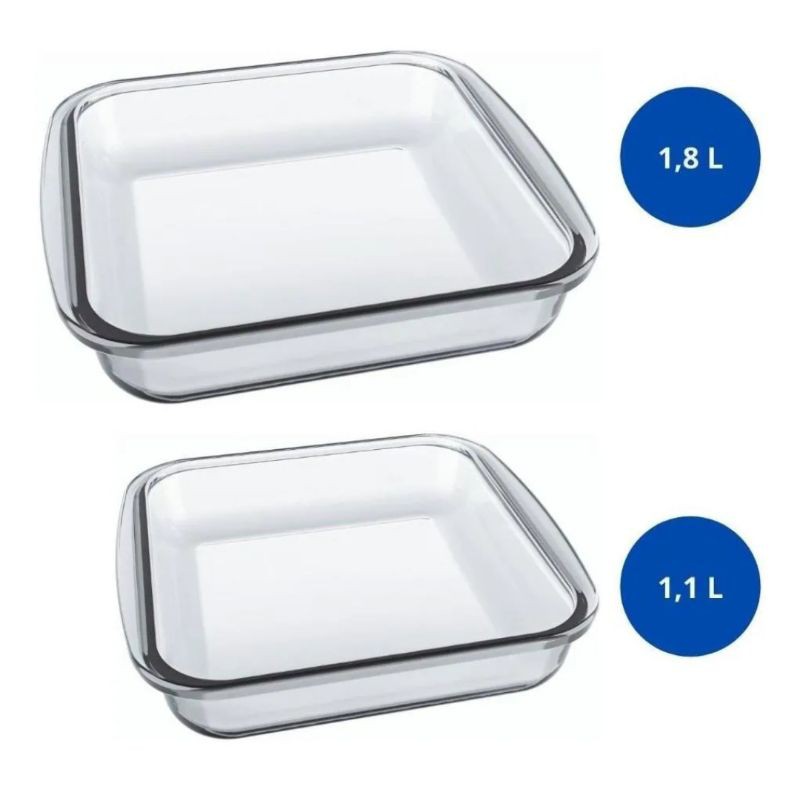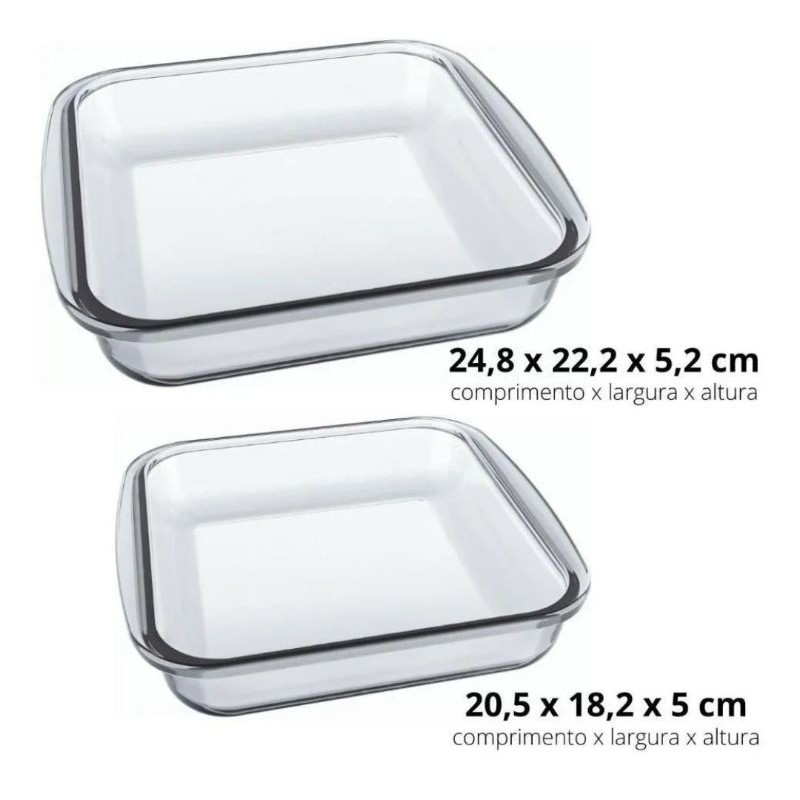 Conjunto jogo Marinex Quadradas 2 peças Travessas Pirex Assadeira