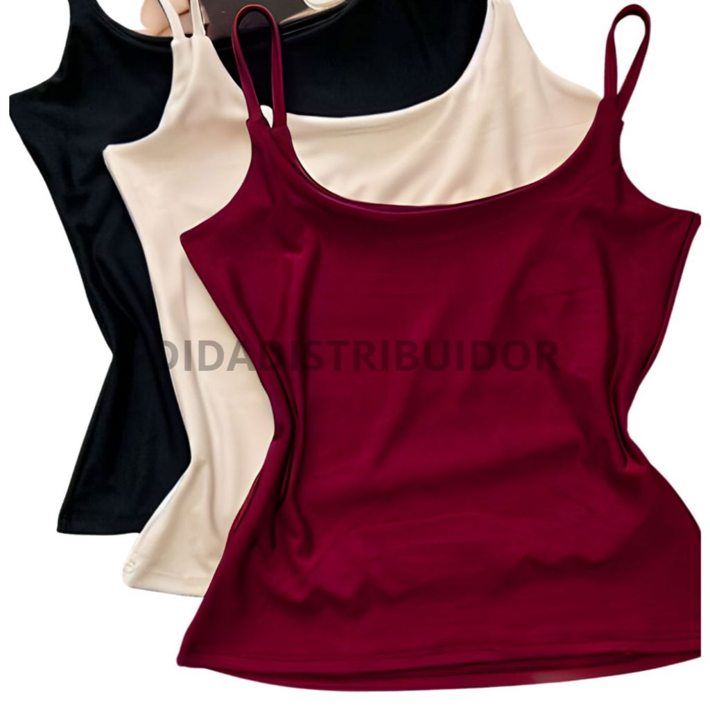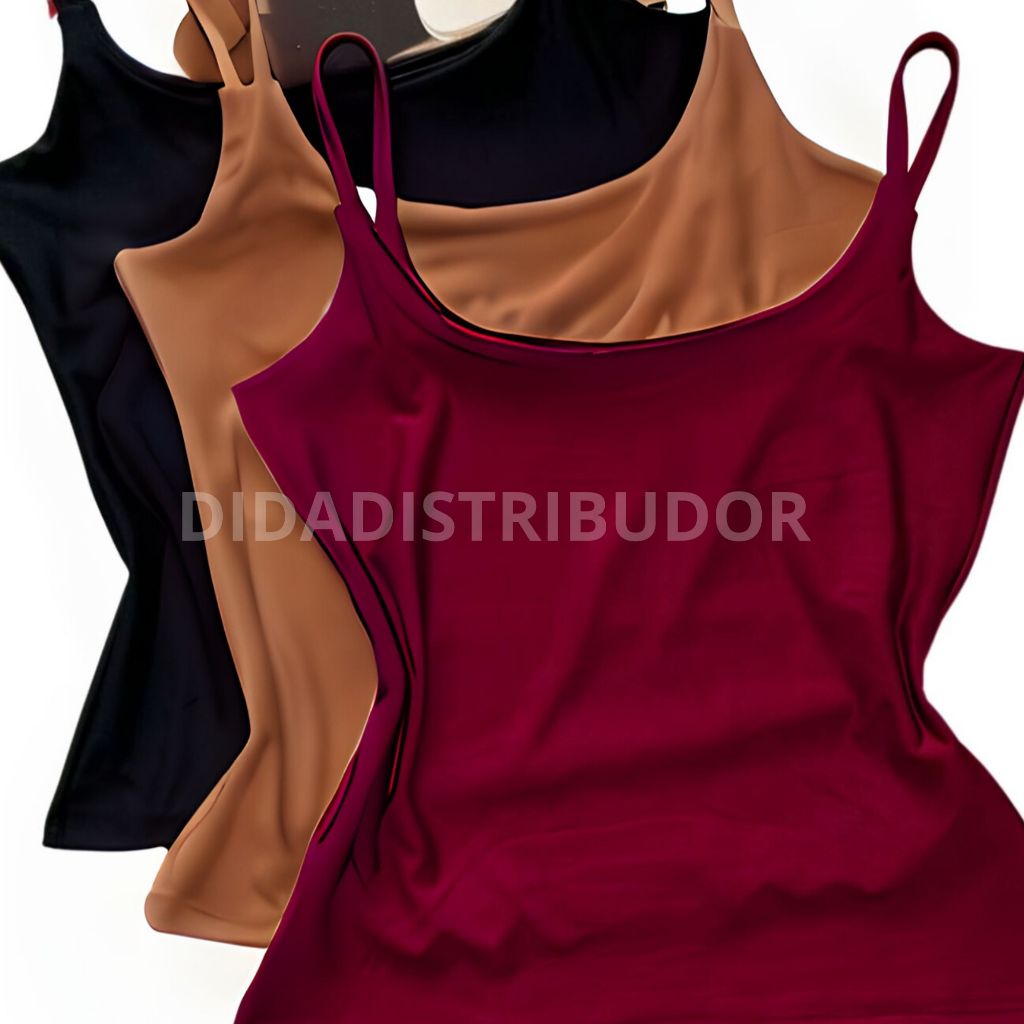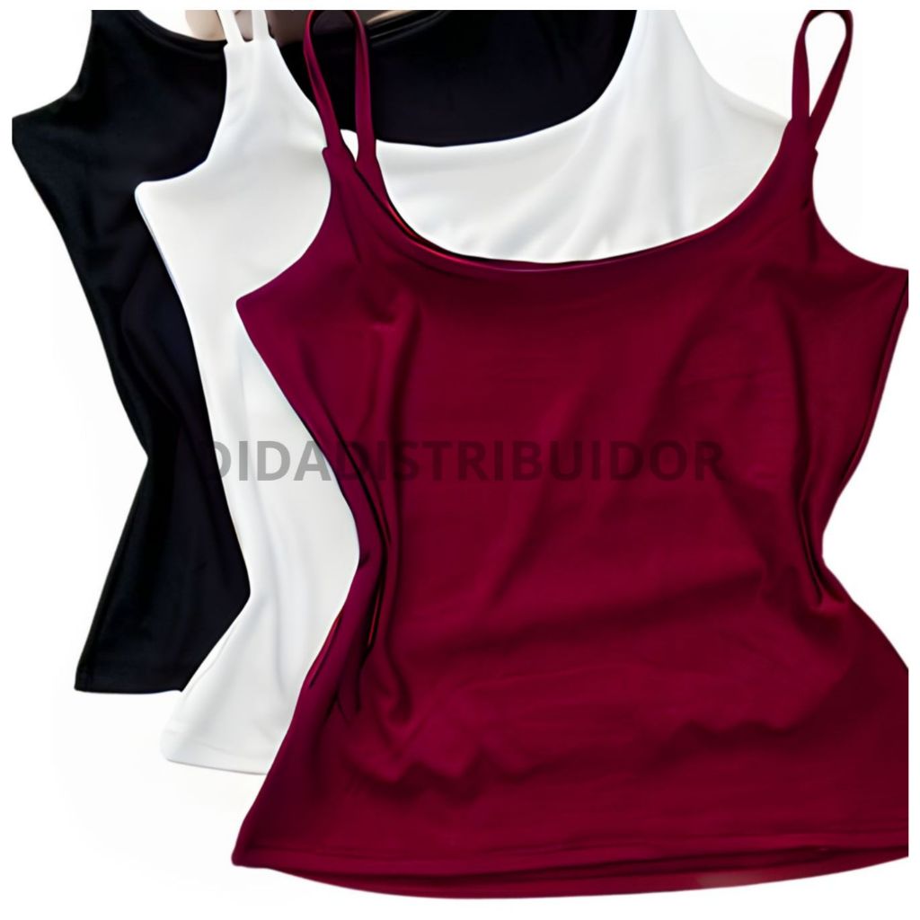 kit 3 blusas feminina regata alcinha fina suplex com forro