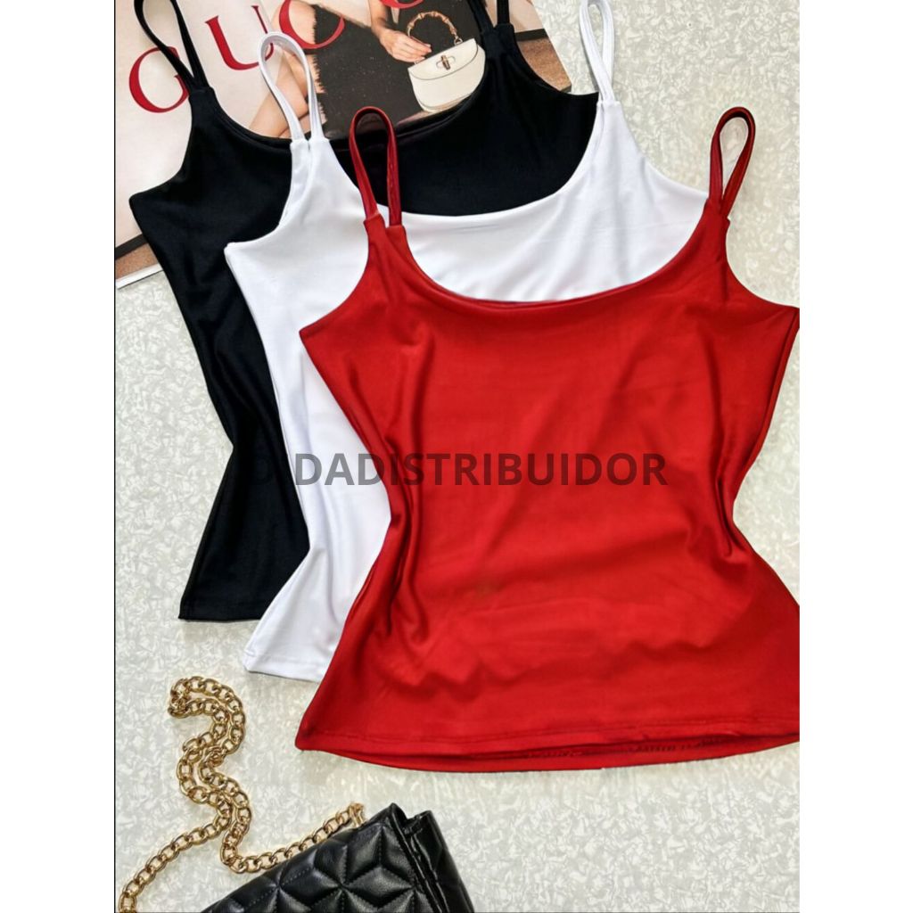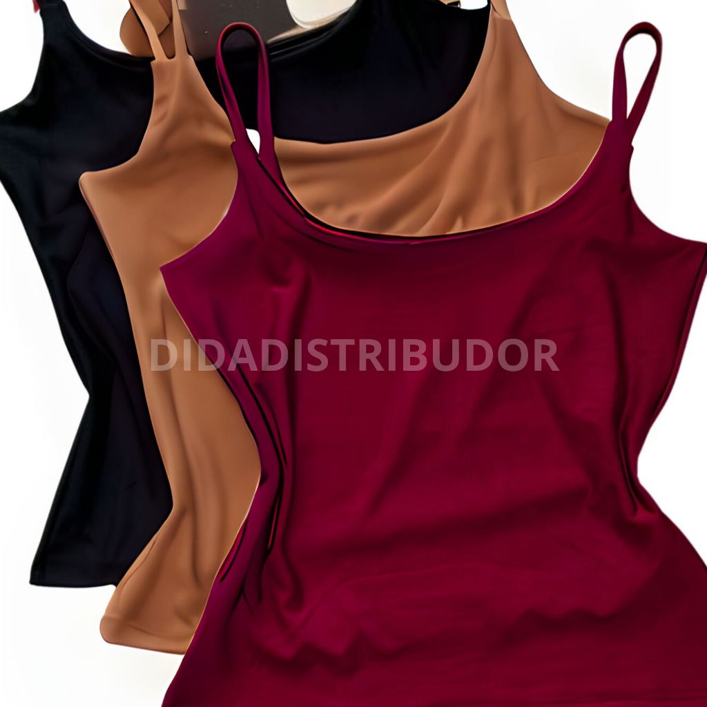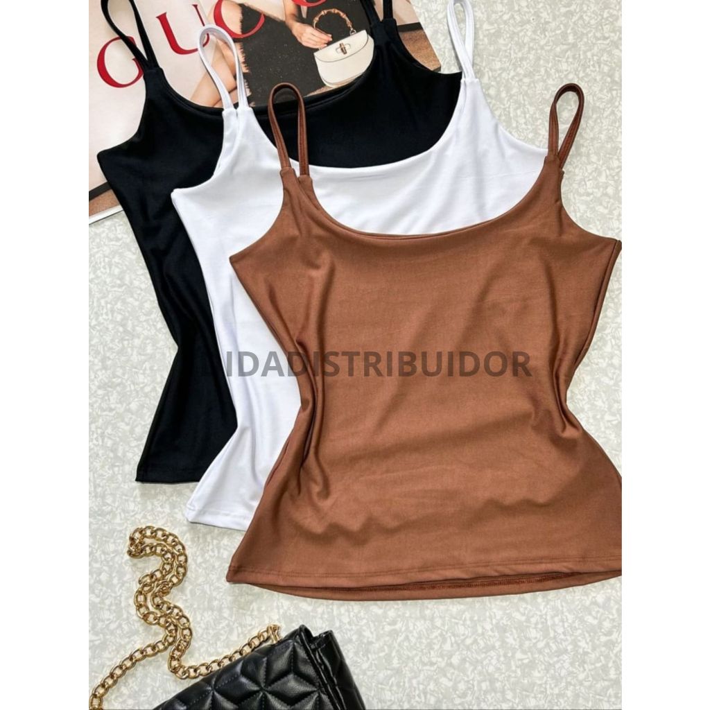 kit 3 blusas feminina regata alcinha fina suplex com forro