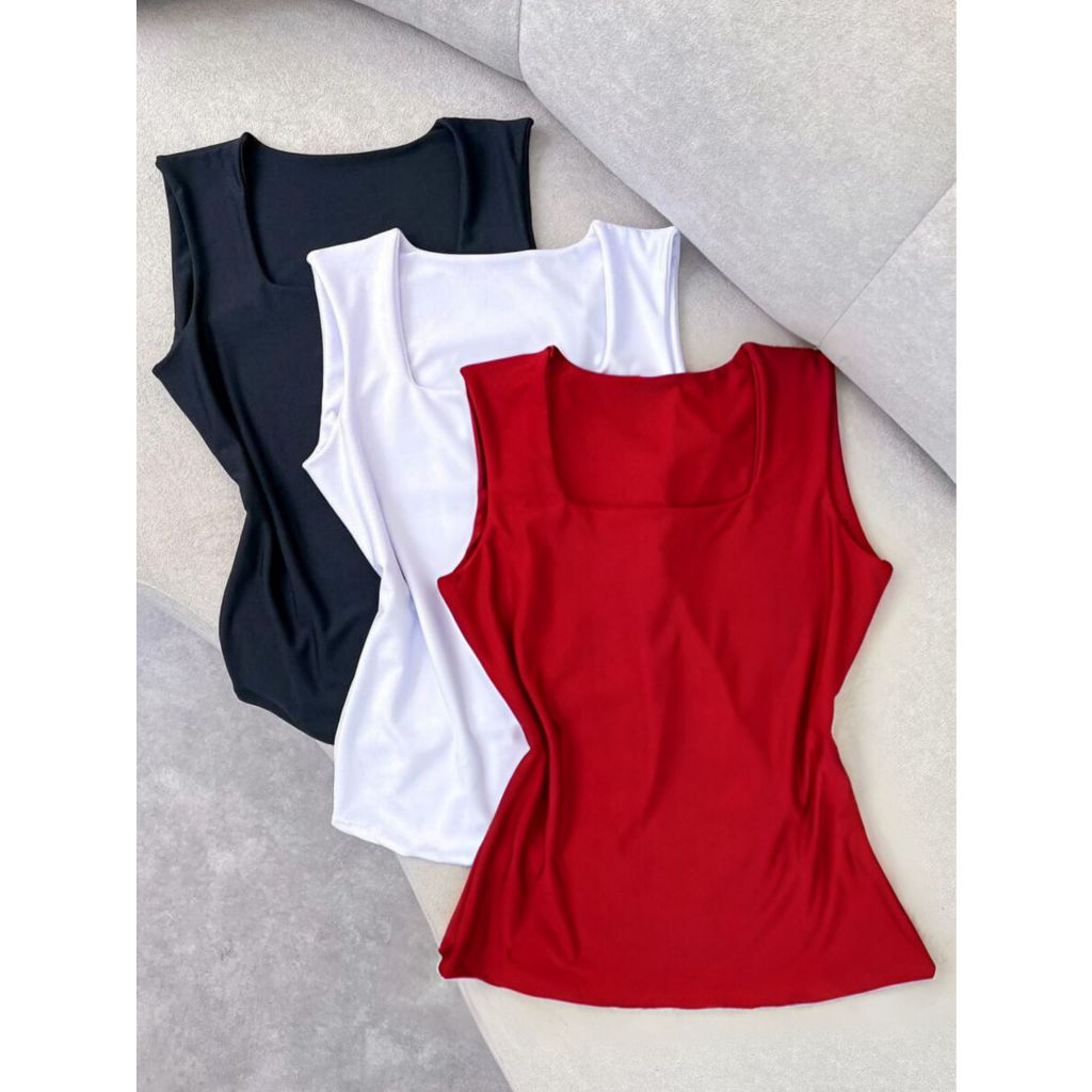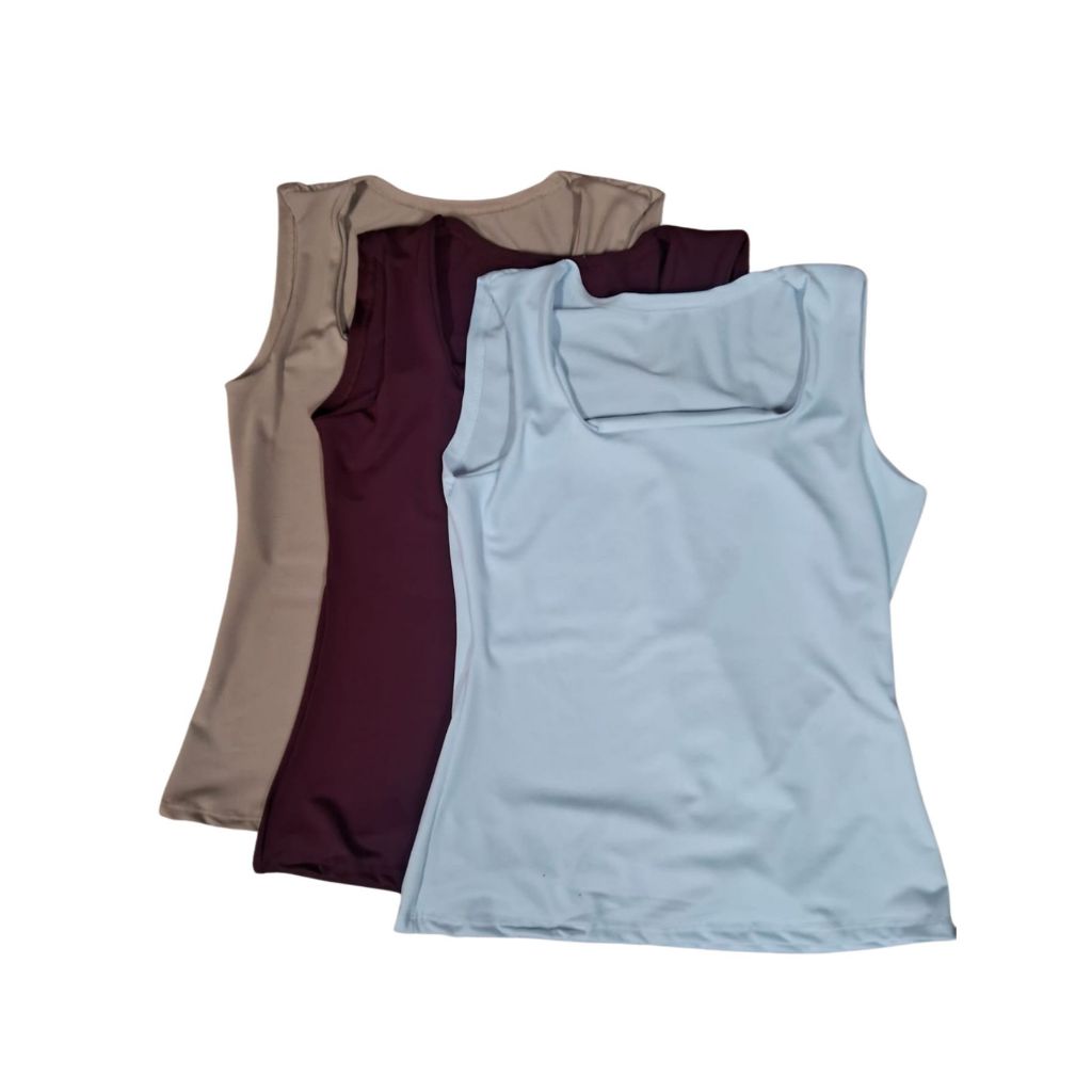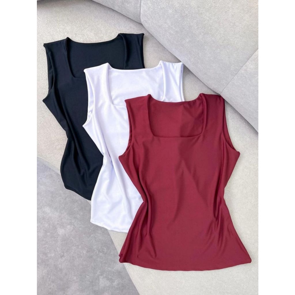 Kit 3 Blusas Feminina Decote Quadrado Reto Em Suplex Lançamento Verão