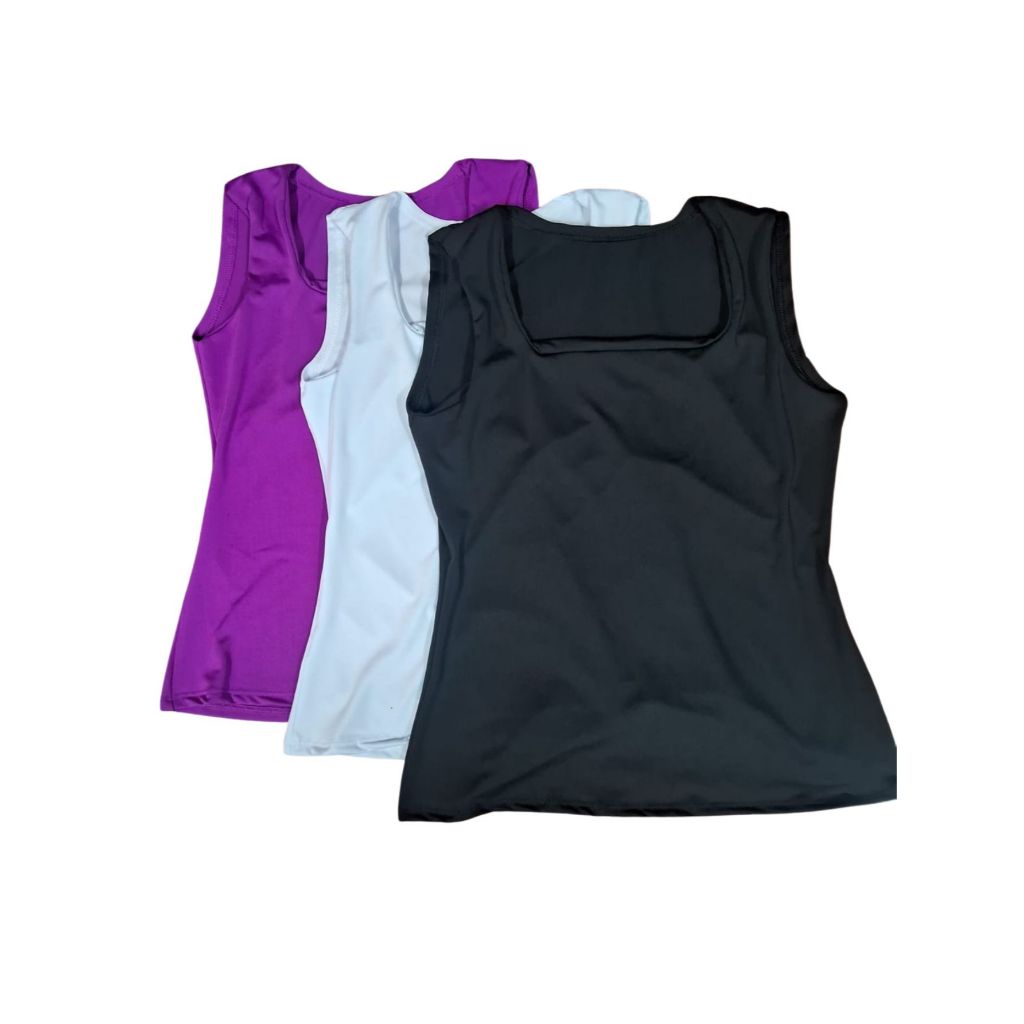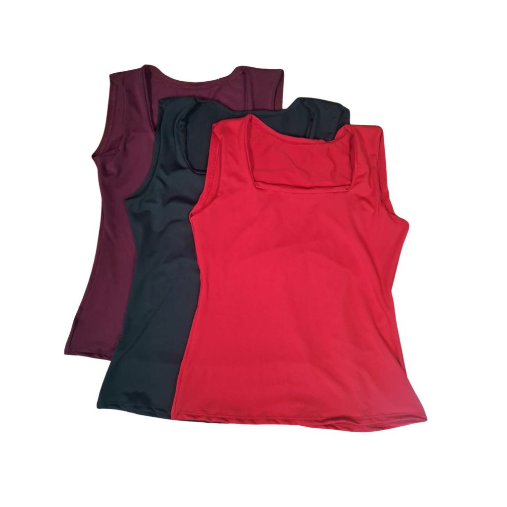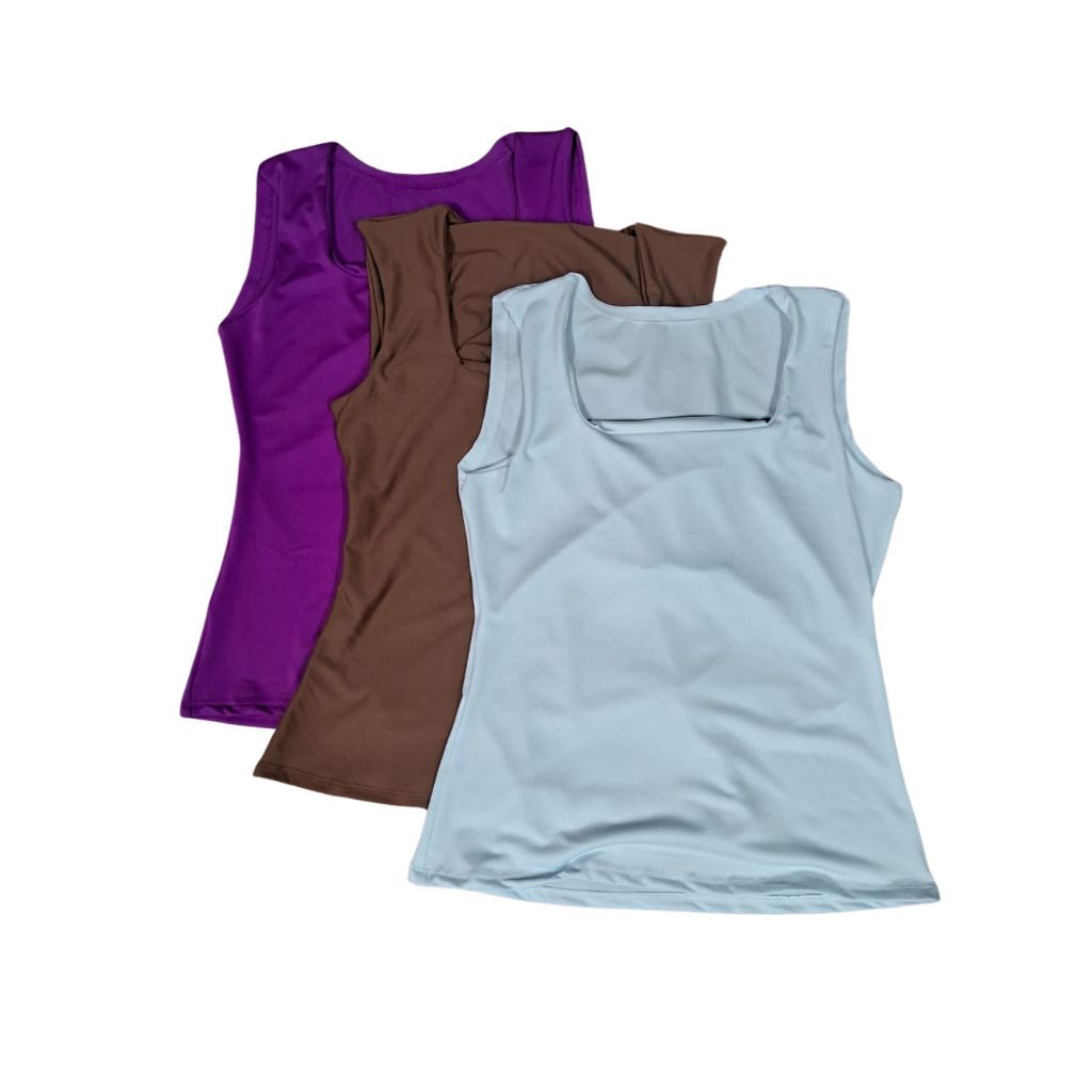 Kit 3 Blusas Feminina Decote Quadrado Reto Em Suplex Lançamento Verão