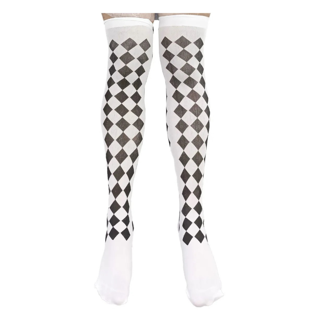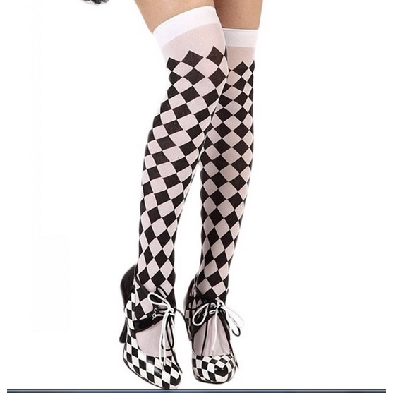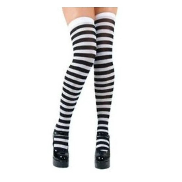 Meia 7/8 Preta Branca Listrada e Xadrez Colegial - pronta entrega