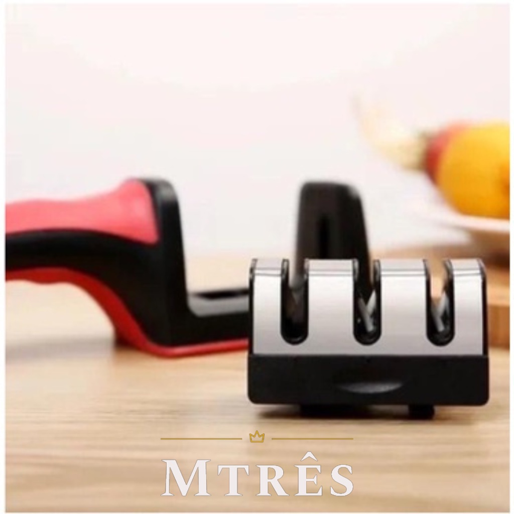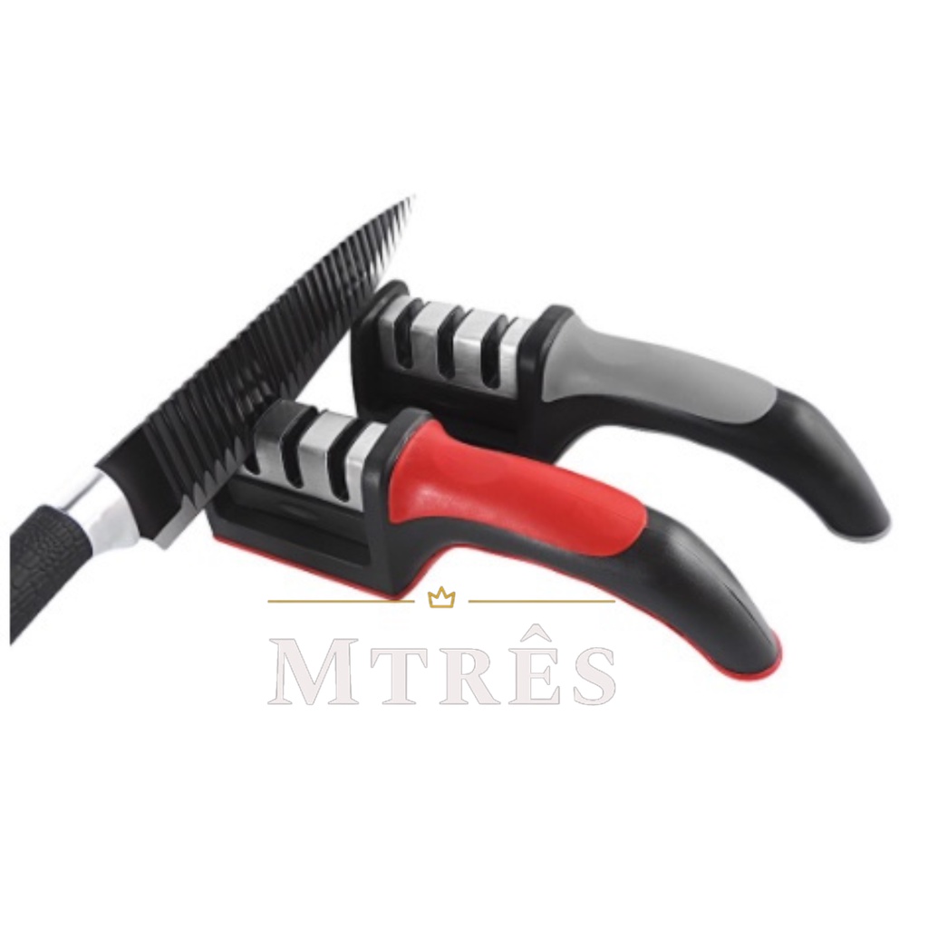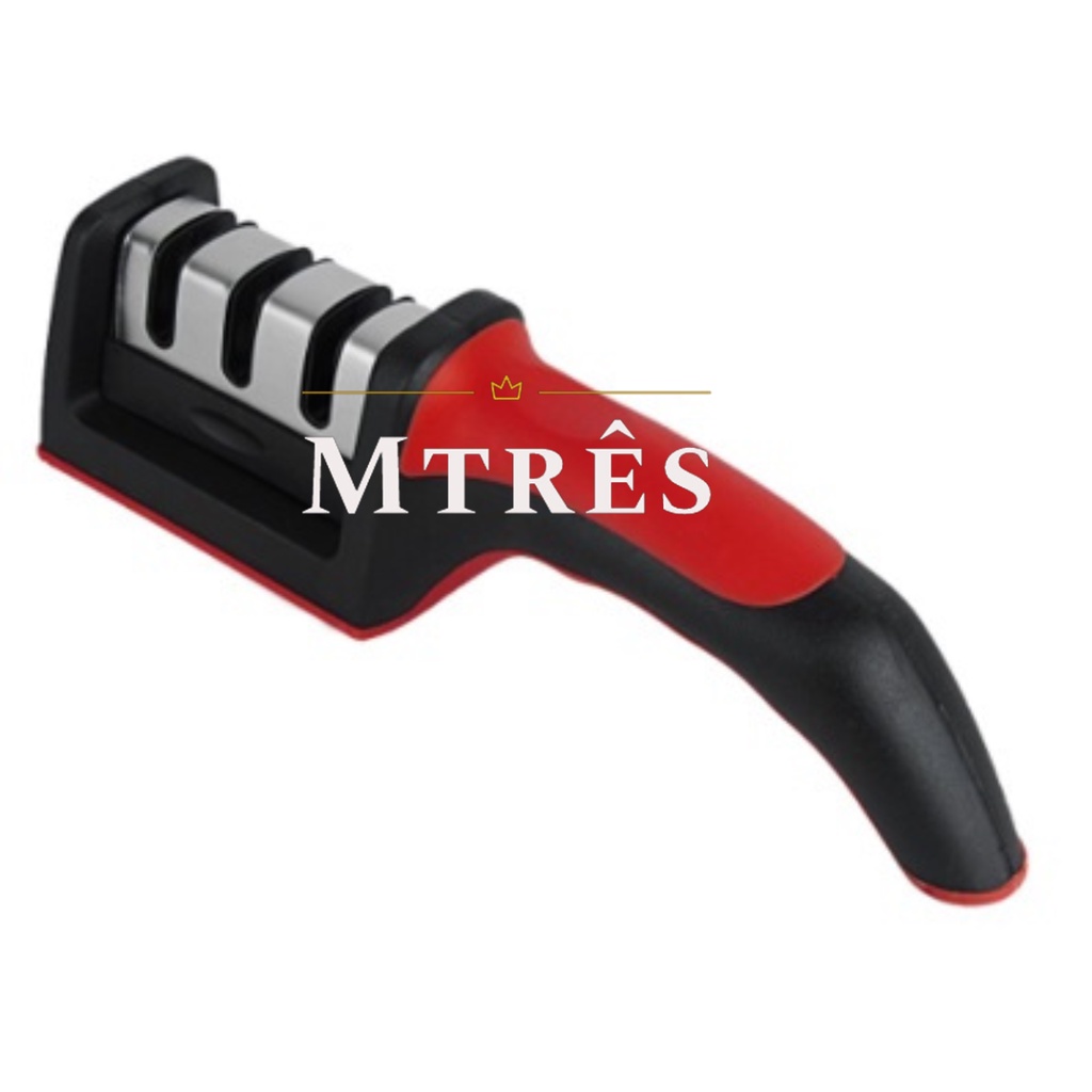 Amolador Afiador De Facas 3 lâminas Em Aço Inox Cabo e Base de Borracha
