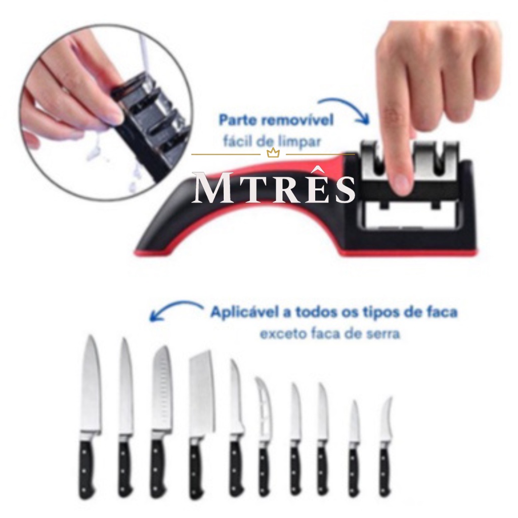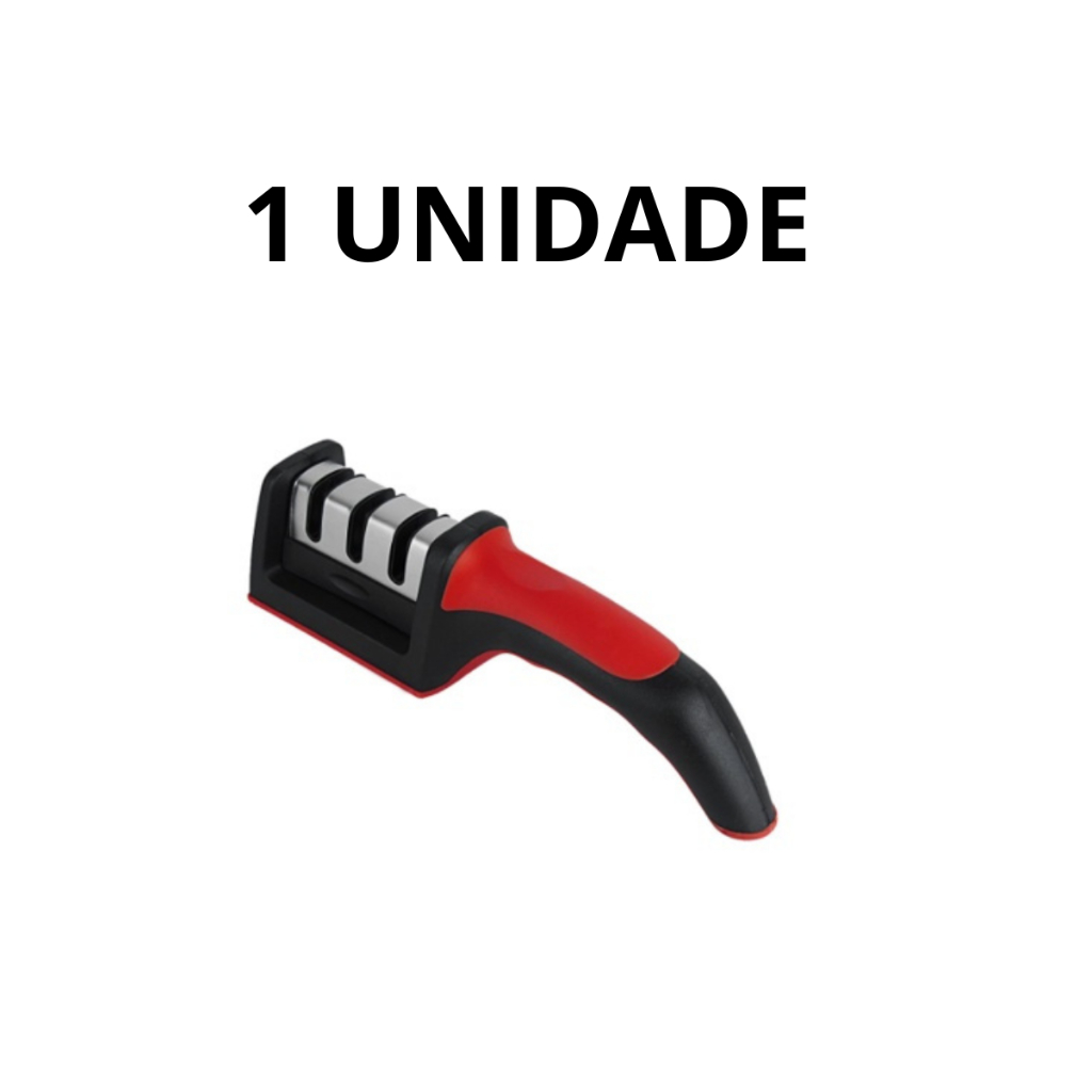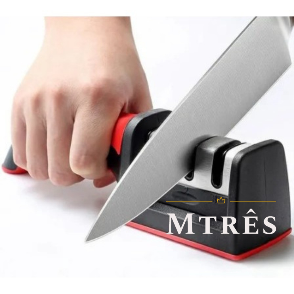 Amolador Afiador De Facas 3 lâminas Em Aço Inox Cabo e Base de Borracha