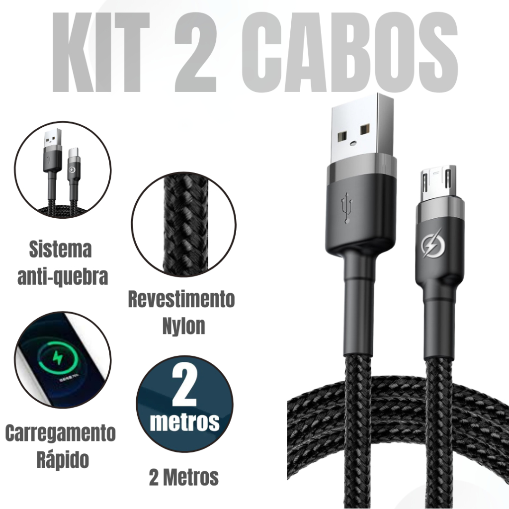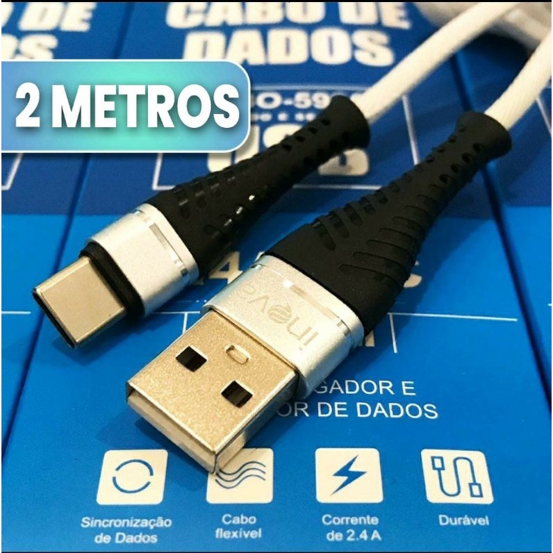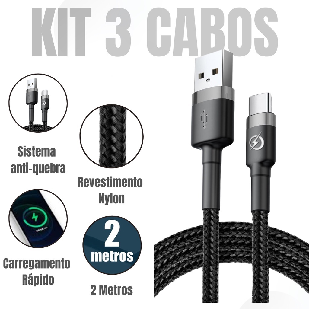 Cabo USB Tipo-C 2 Metros Reforçado Nylon Turbo Rápido