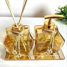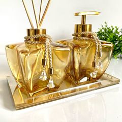 kit lavabo estrela mel com detalhes ouro bandeja espelhada