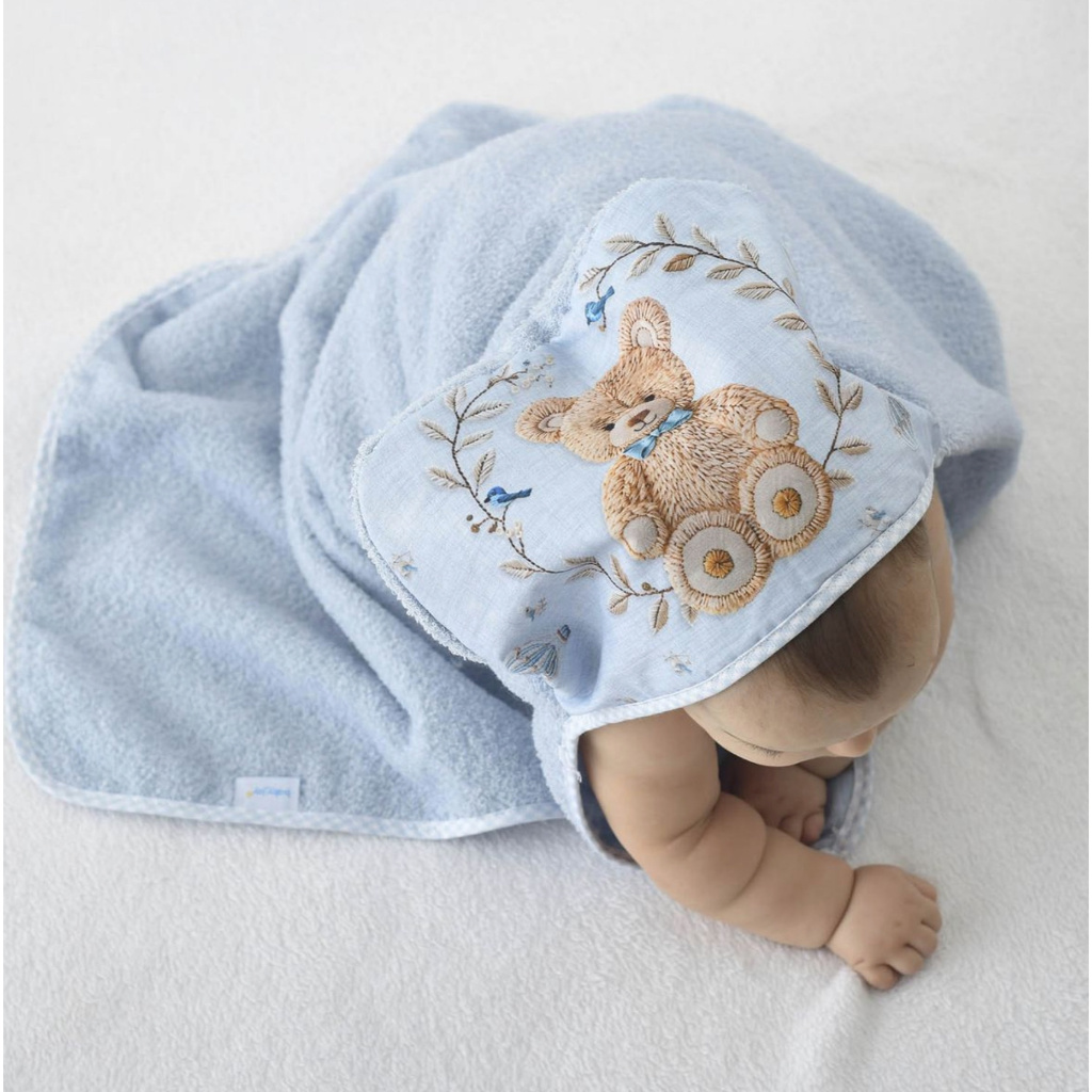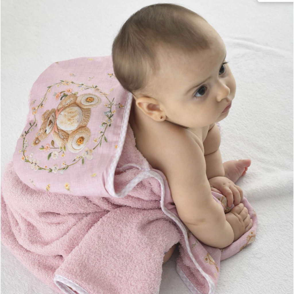 Toalha de Banho Felpuda c capuz forro fralda estampa digital Baby Joy Fabula 100% Algodão incomfral