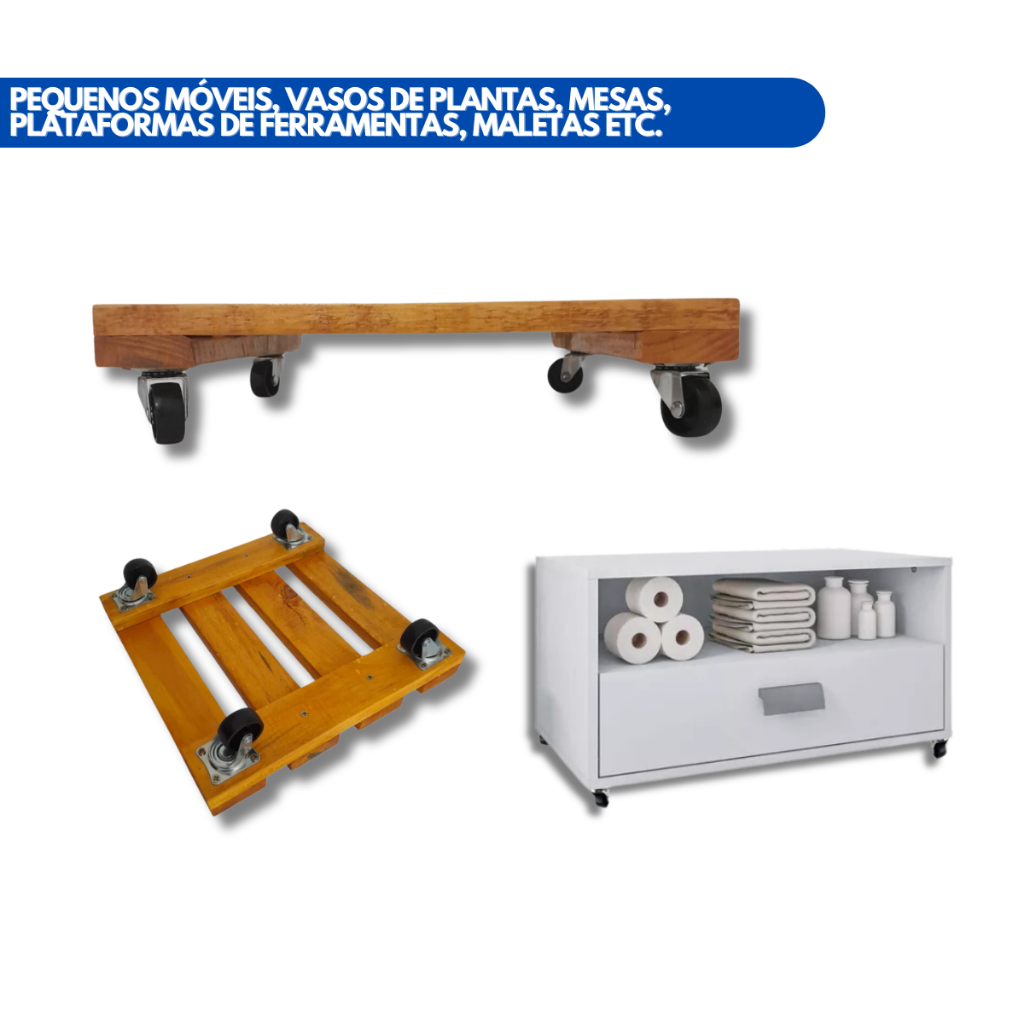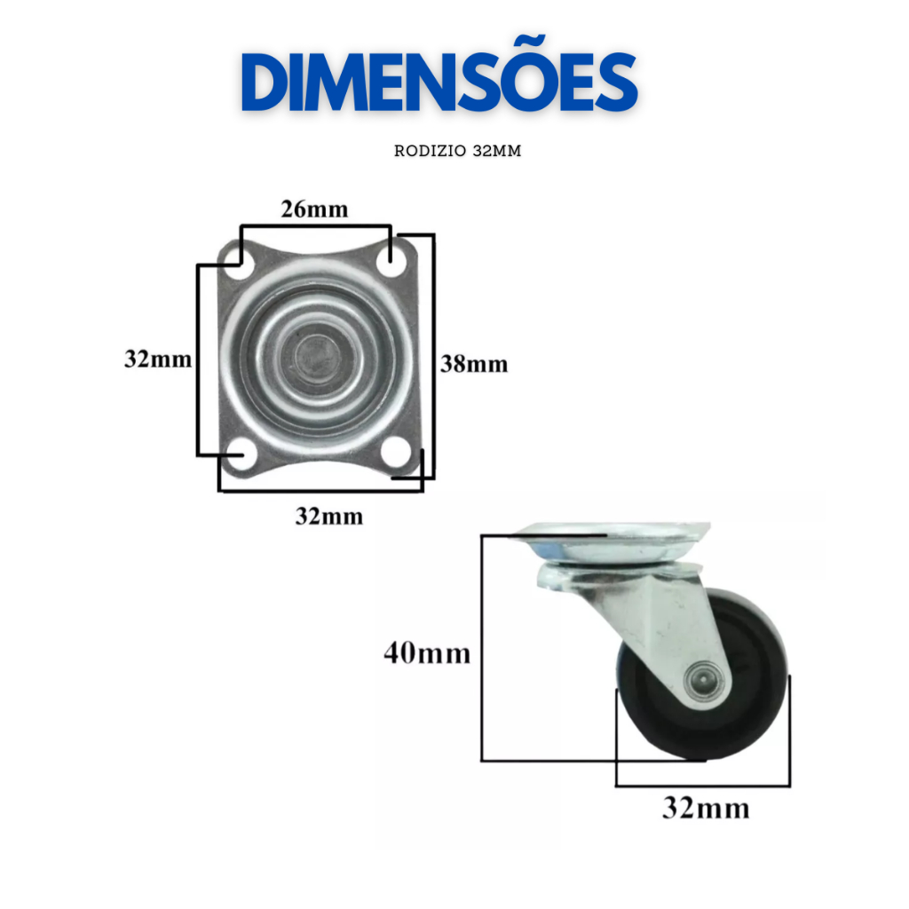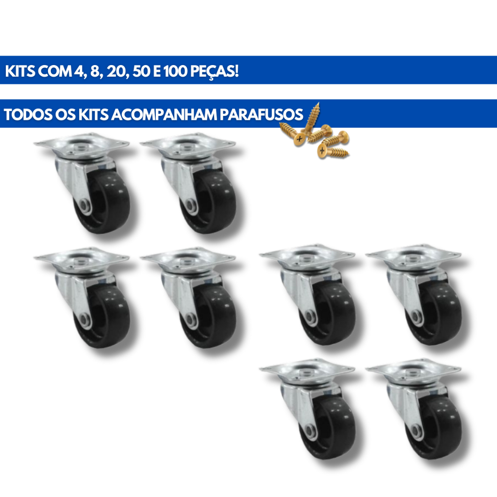 KIT COM 8 PEÇAS Rodinha para moveis Rodízios Giratórias OITO - 3,2 cm PVC/Metal móveis vaso mala + Parafusos