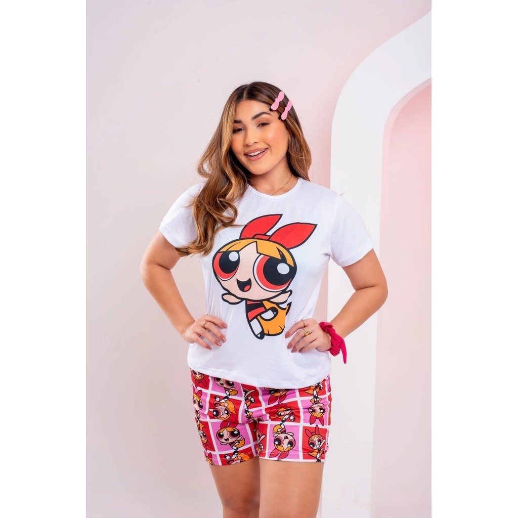 Pijama Baby Doll Manga Curta Meninas Super Poderosas