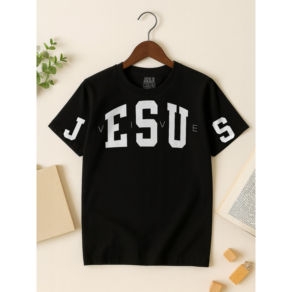 Camiseta Infantil em Algodão 100% Gospel Jesus Vive