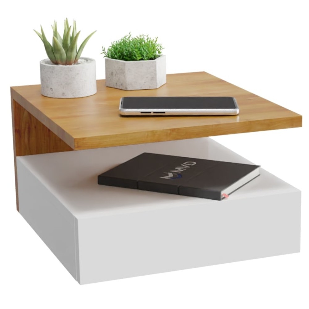 Mesa De Cabeceira Cor Madeira E Branco Mesinha Suspensa Com Gaveta e Prateleira MVD Móveis
