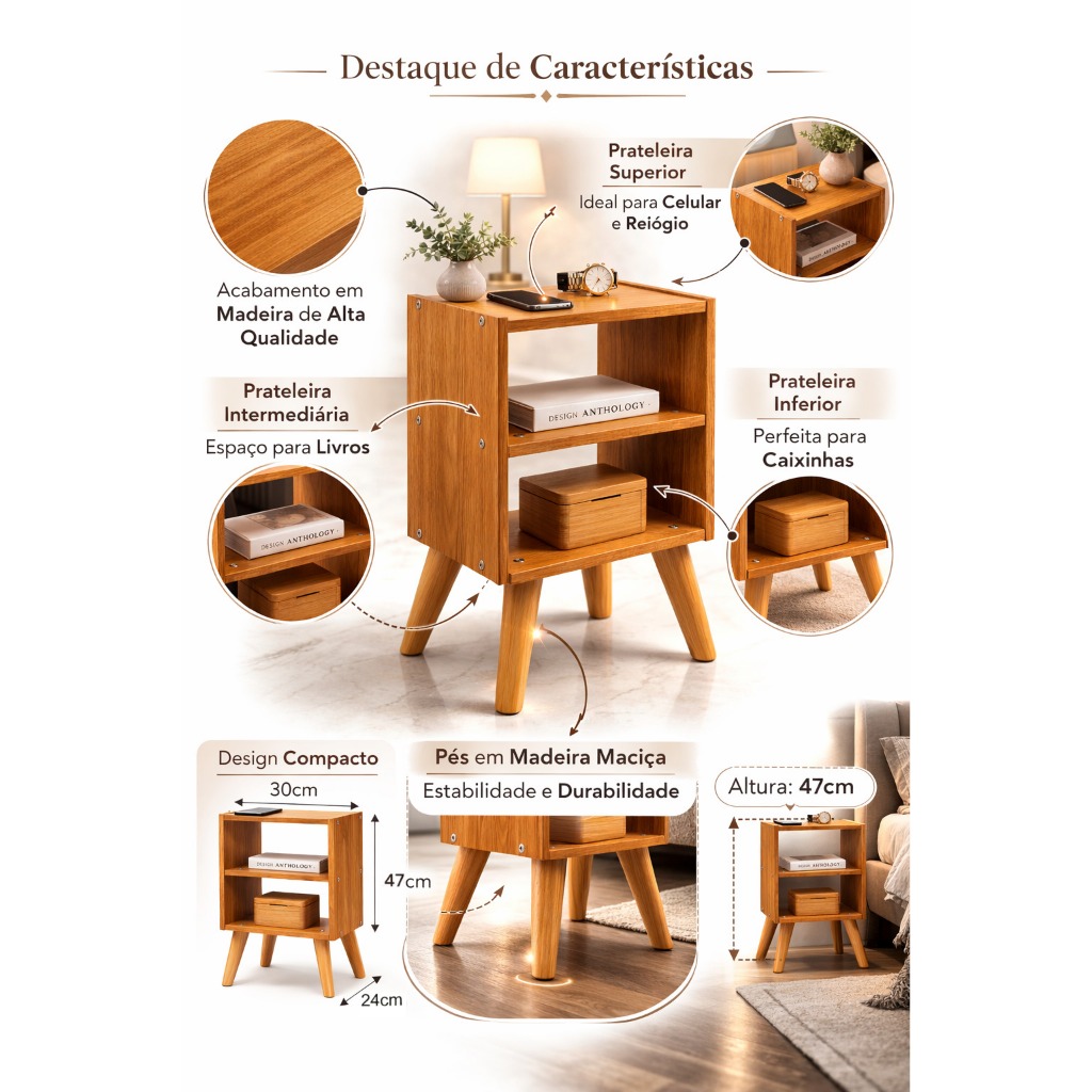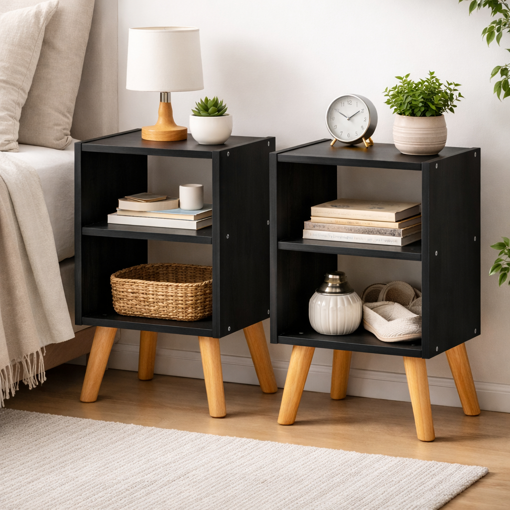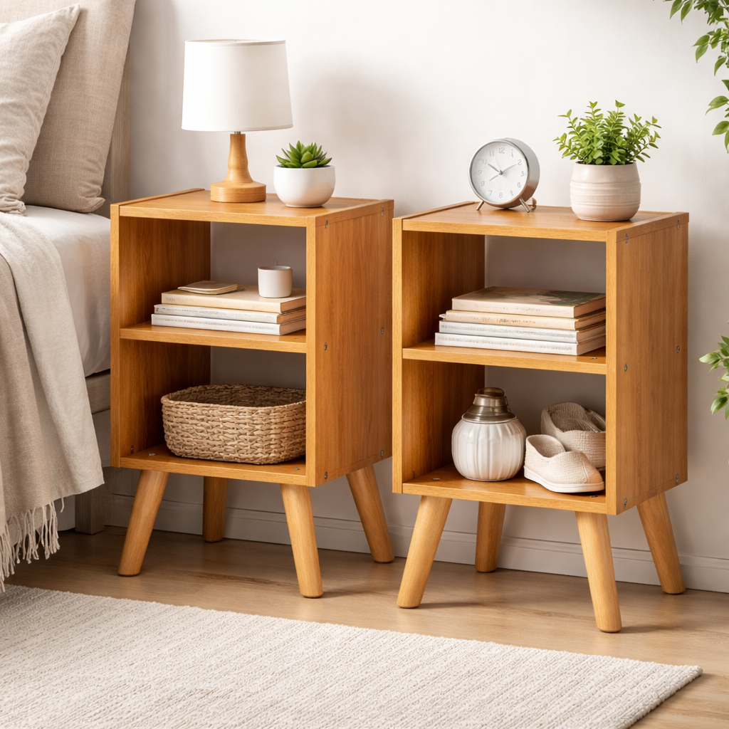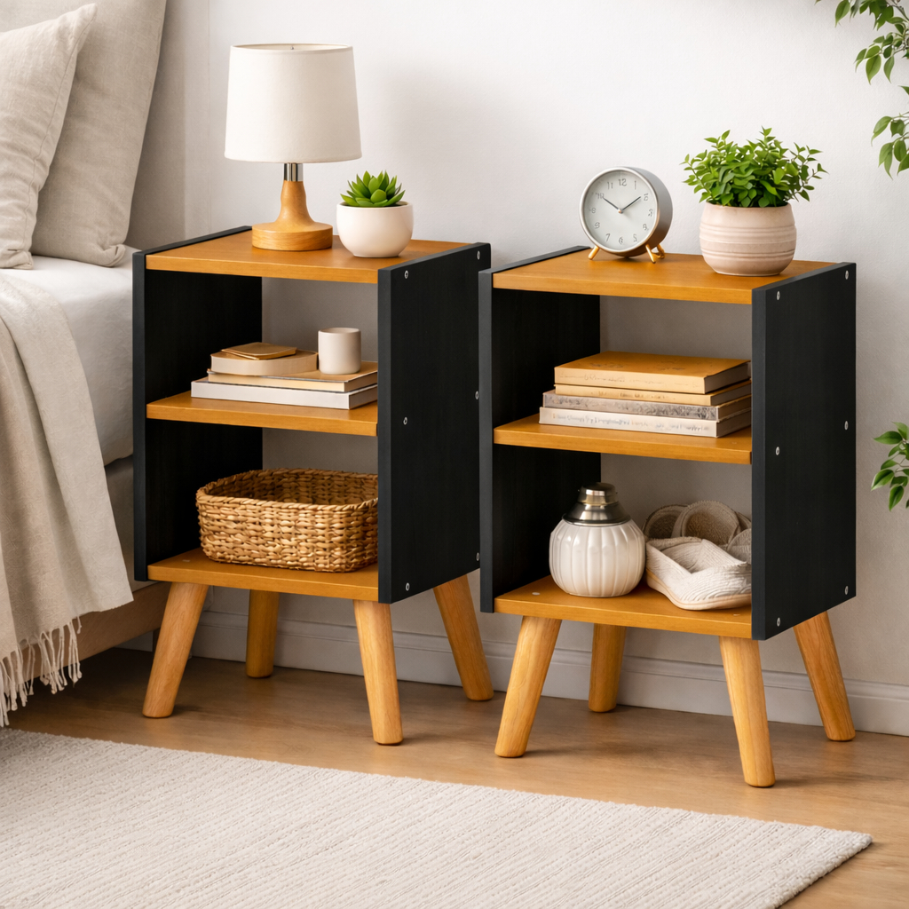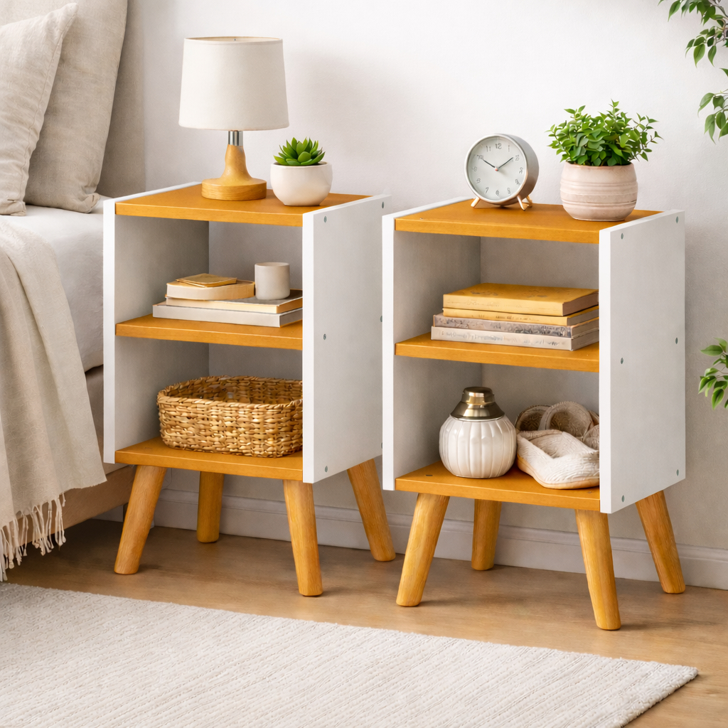 Kit 2 Mesa De Cabeceira Mesinha Quarto Pés Retro Nicho Prateleira Várias Cores