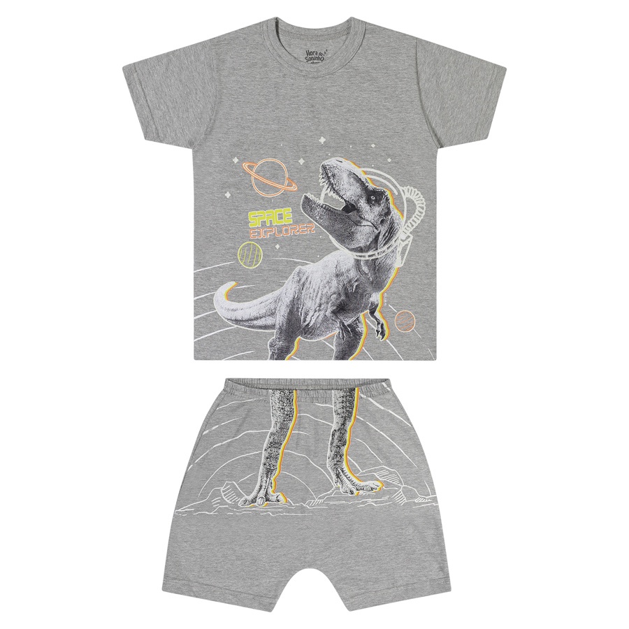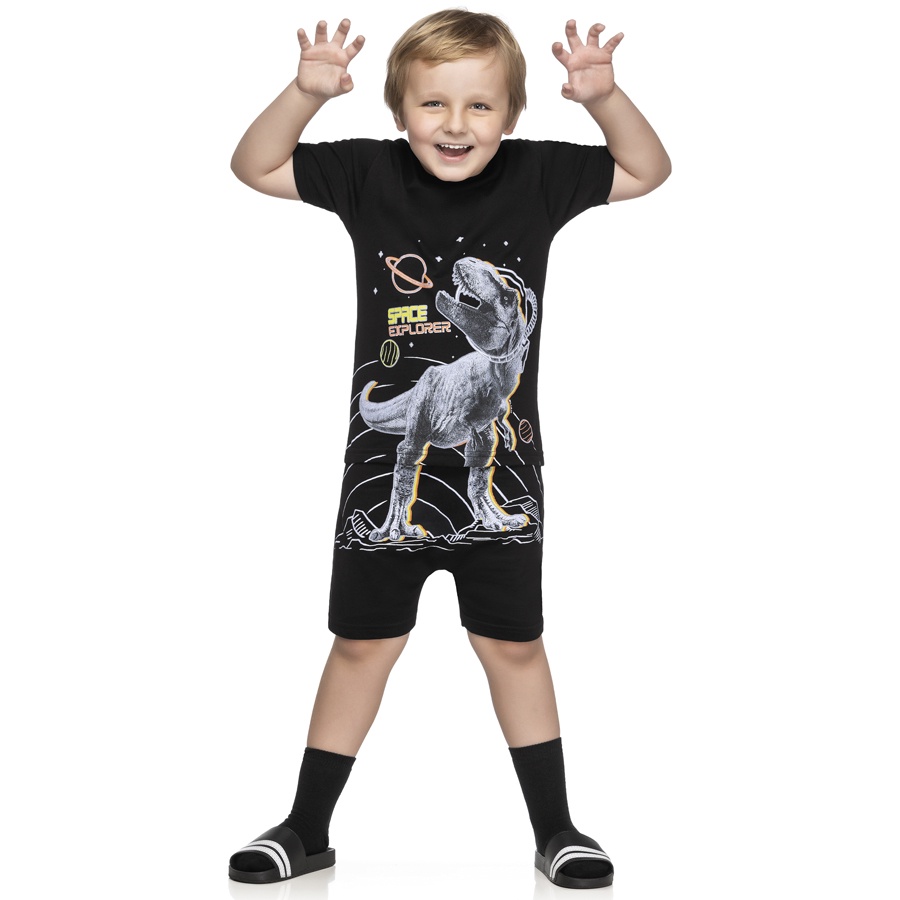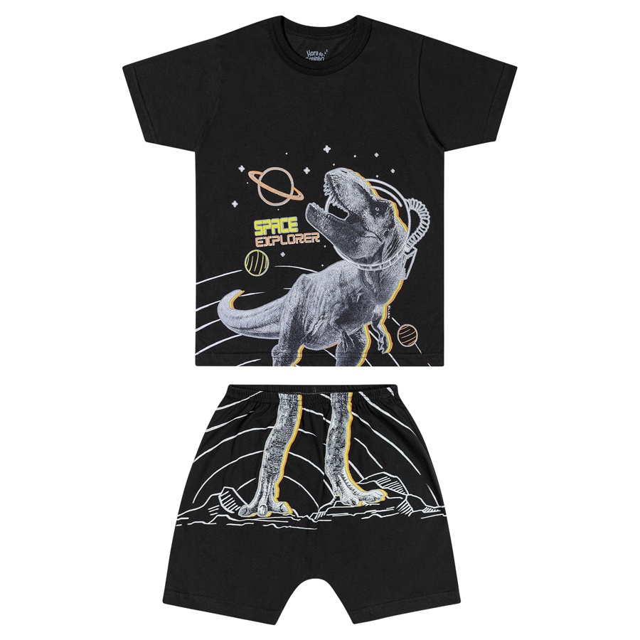 Pijama Curto Infantil Elian Dinossauro Rex Masculino Brilha Escuro