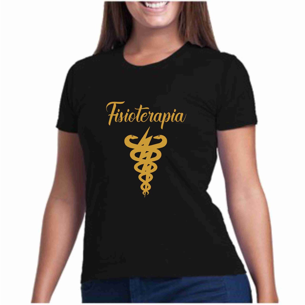 Camiseta Preta com Dourado Profissões - Fisioterapia -Faculdade