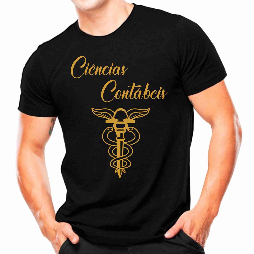 Camiseta Preta com Dourado Profissões - Ciencias Contábeis -Faculdade