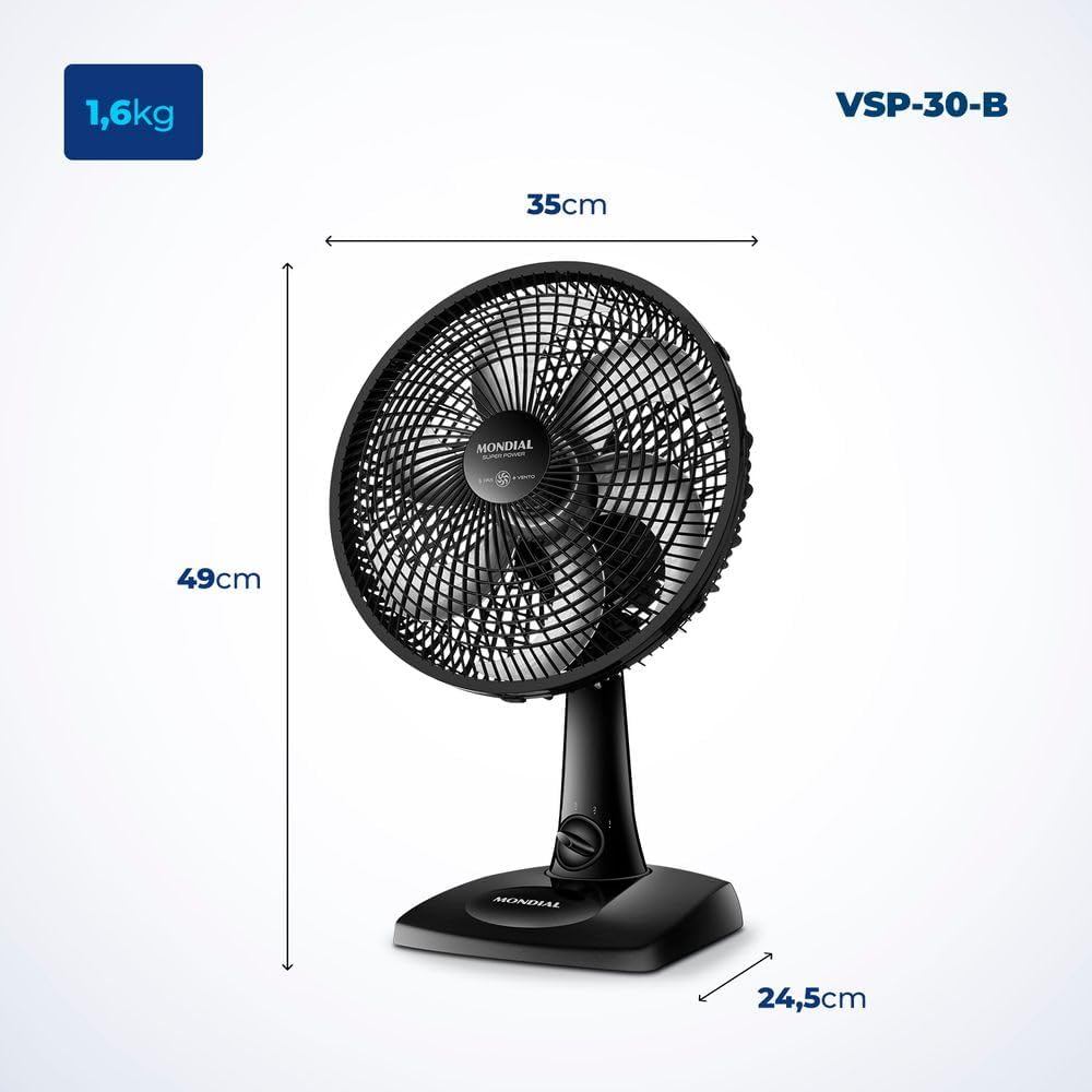 Ventilador de Mesa 30cm VSP 30 Black 127V 60Hz Super Power Mondial