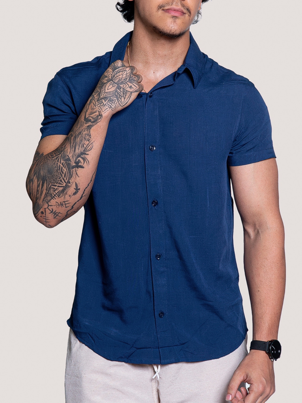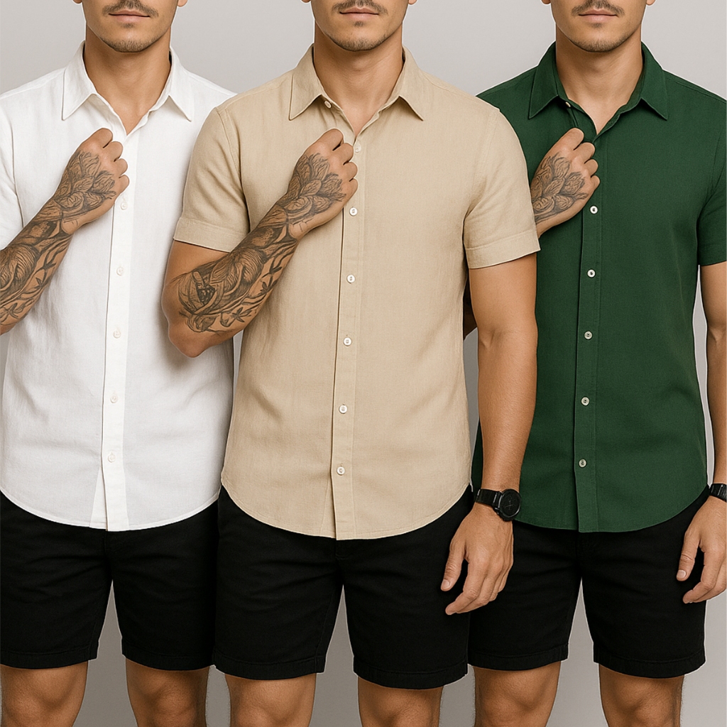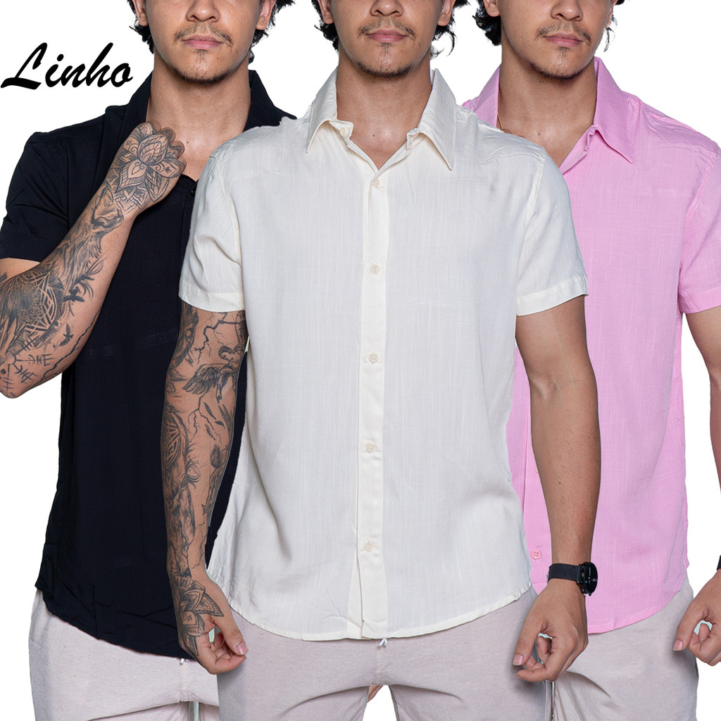 Kit 3 Camisa de linho Masculina para verão praia manga curta fresca moda