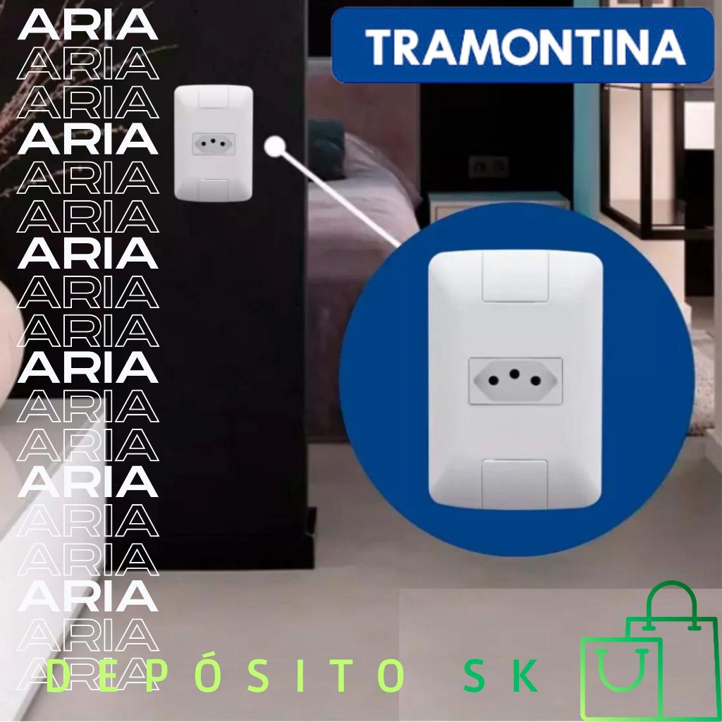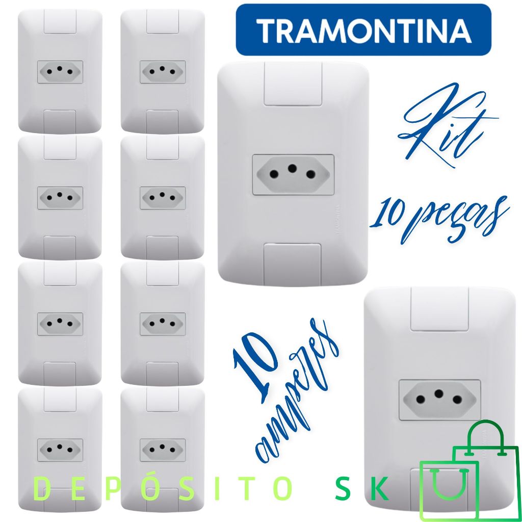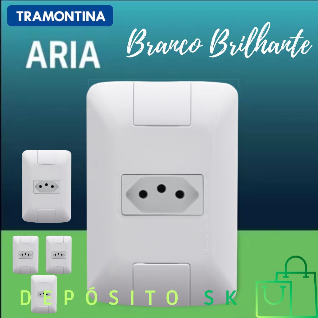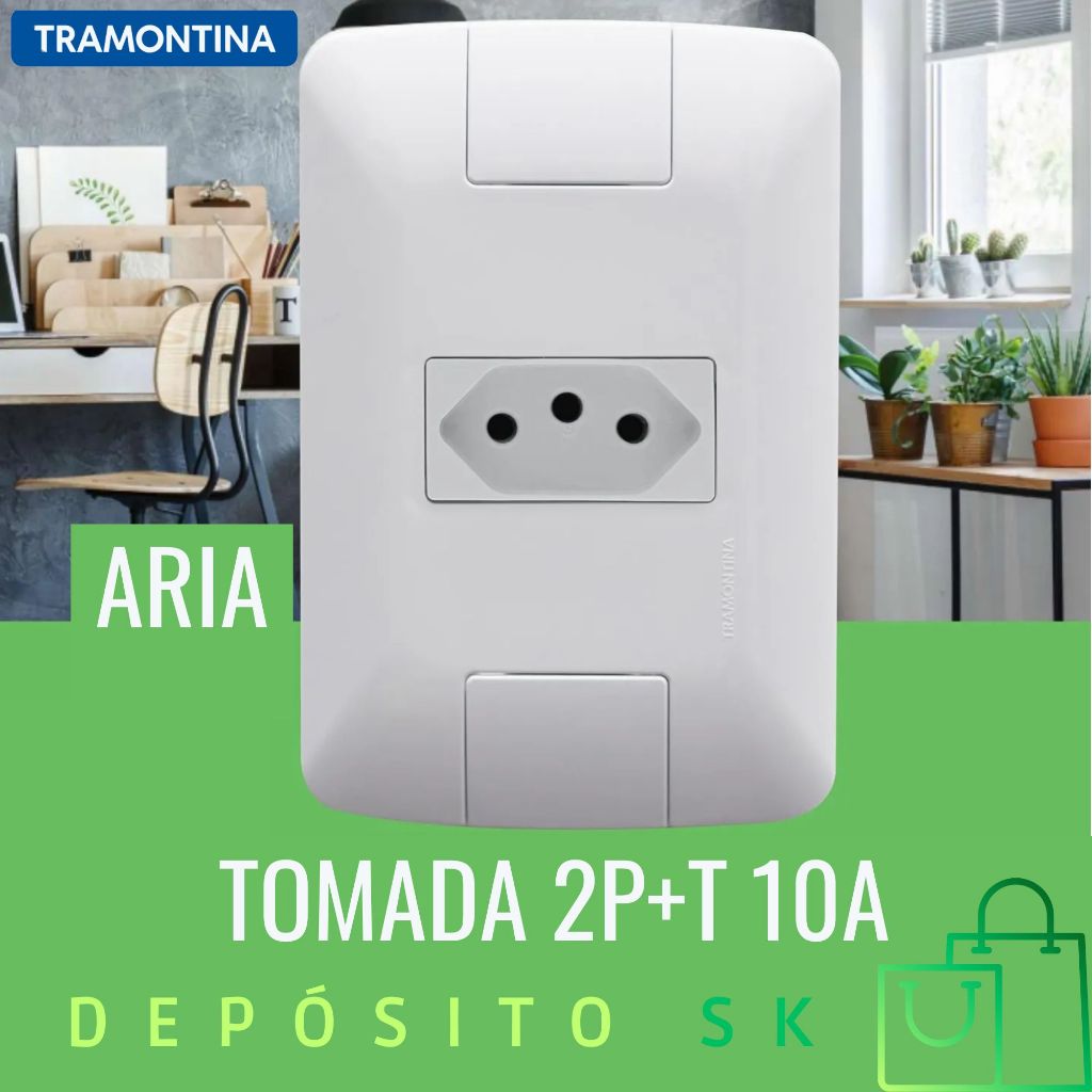 Tomada 10A kit c/ 10 unidades - Tramontina ARIA Acabamento Brilhante Cozinha Banheiro Escritório