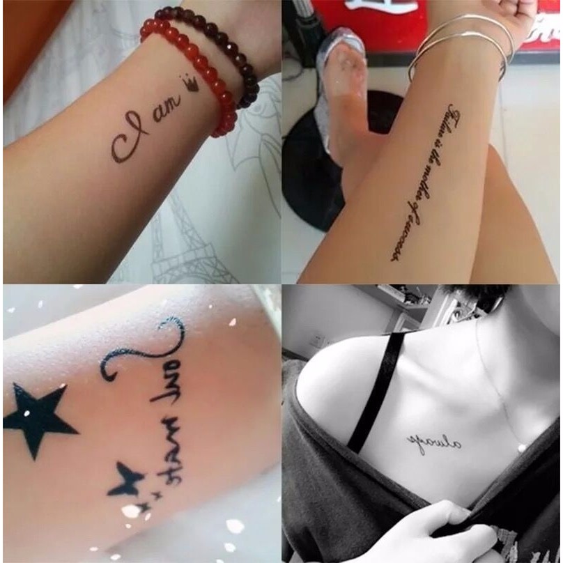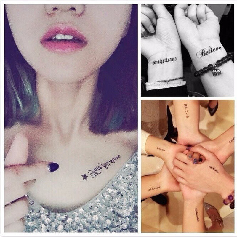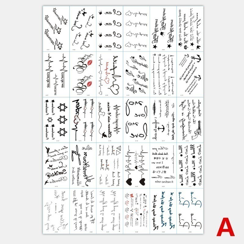 30 Pcs Tatuagem Temporária Etiqueta Bonito Pequeno Fresco Etiqueta Inglês Carta Tatuagem Falsa Tatuagem À Prova D 'Água