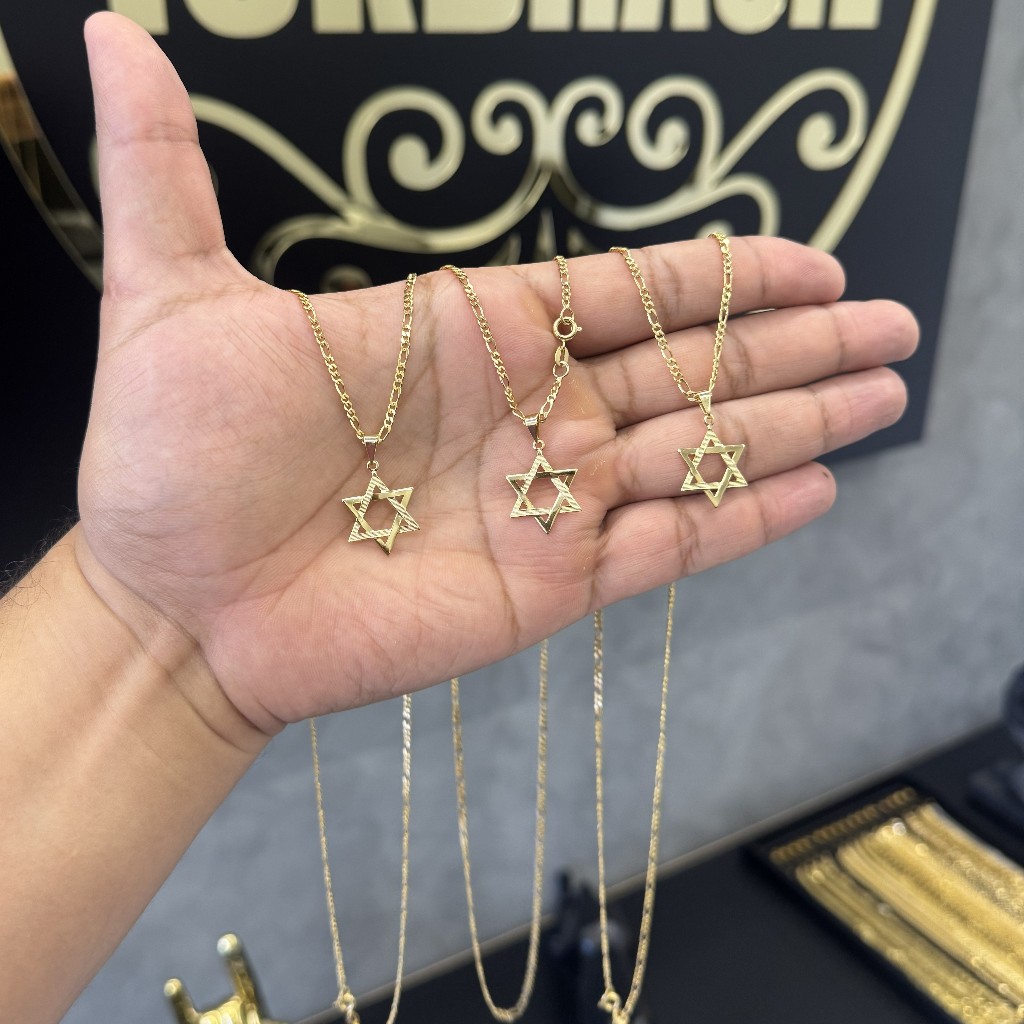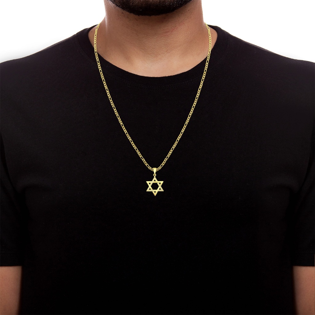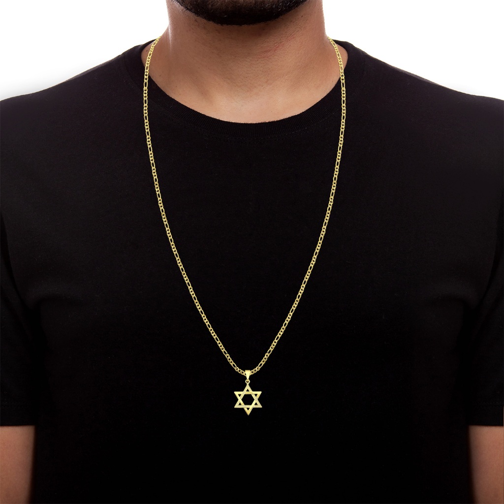Cordão Masculino com Pingente Estrela de Davi Banhado a Ouro 18k Corrente Folheada