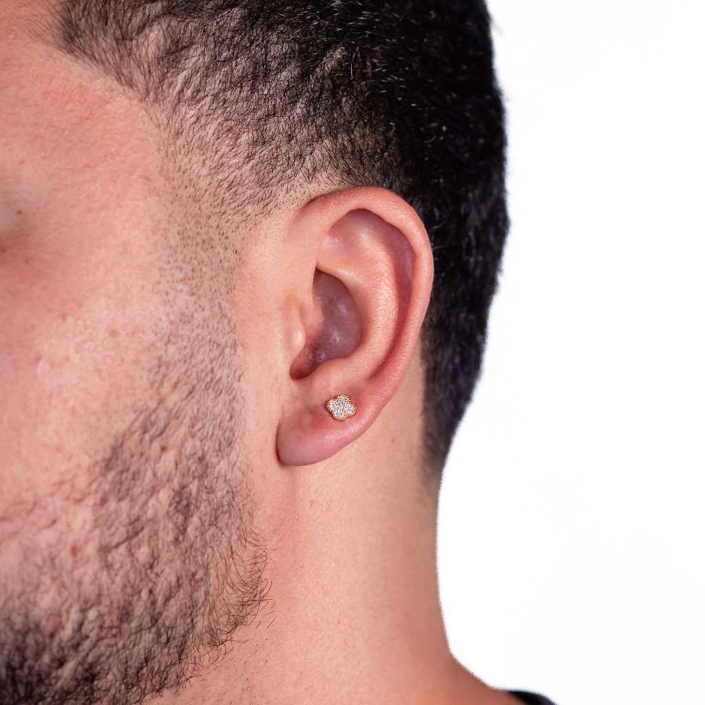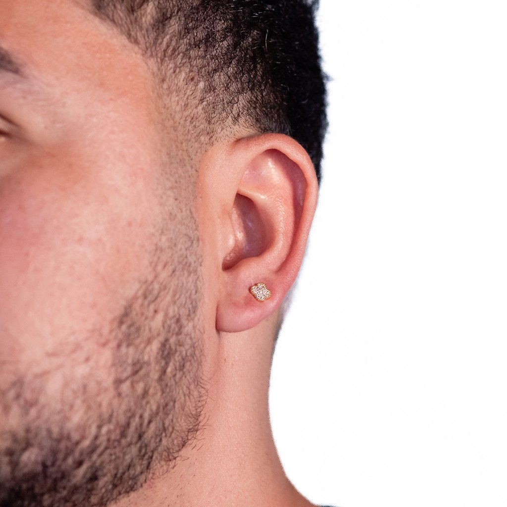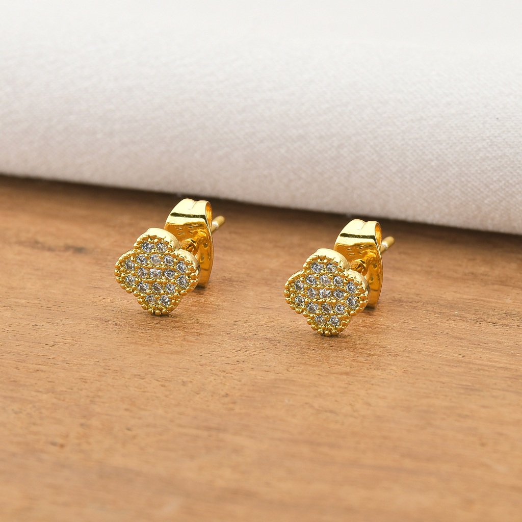 Brinco de Trevo Neymar Cravejado Banhado a Ouro Segundo Furo