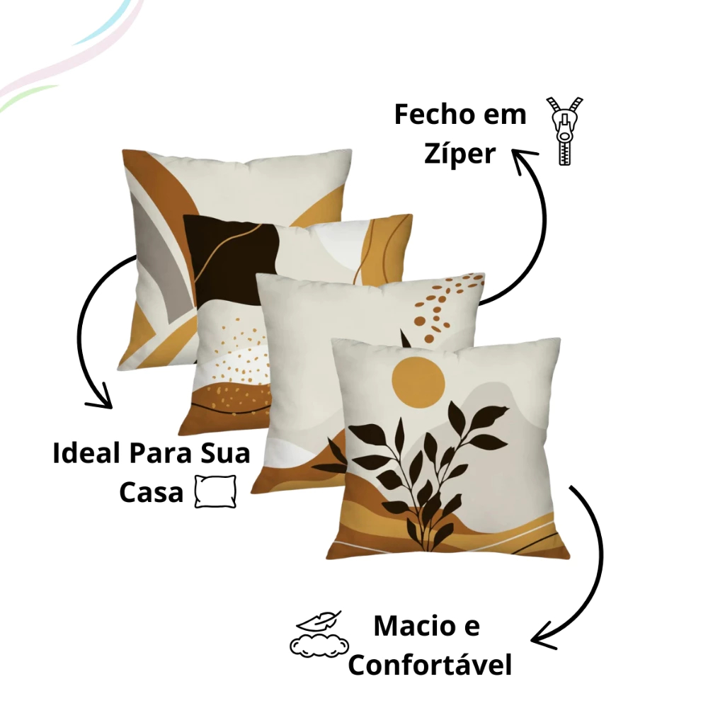Kit 4 Capas Para Almofadas com Zíper Decorativas Ideal Para Decoração de Quarto e Sala