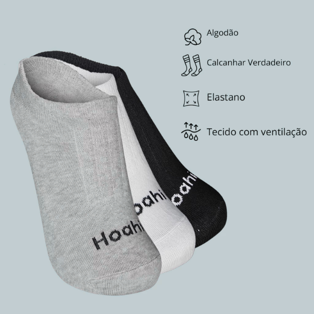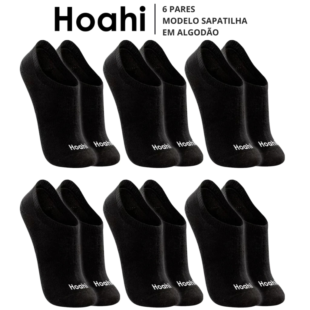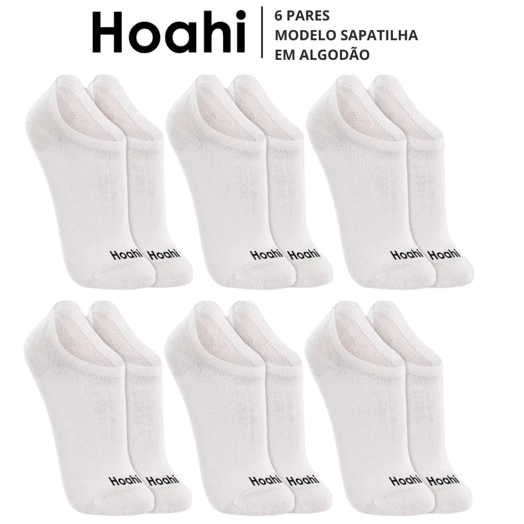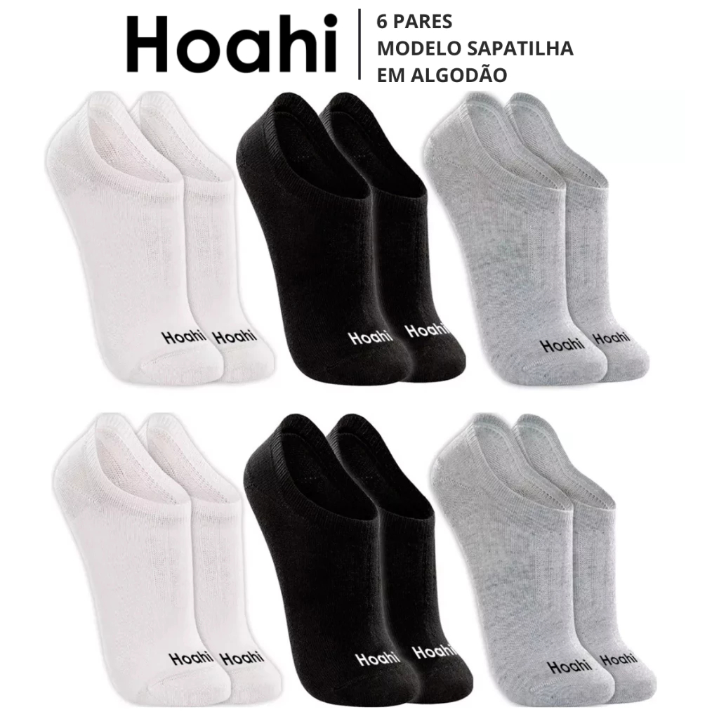 Kit 6 Pares Meias Hoahi Invisível Sapatilha Cano Baixo Confortável Masculina Feminina Algodão