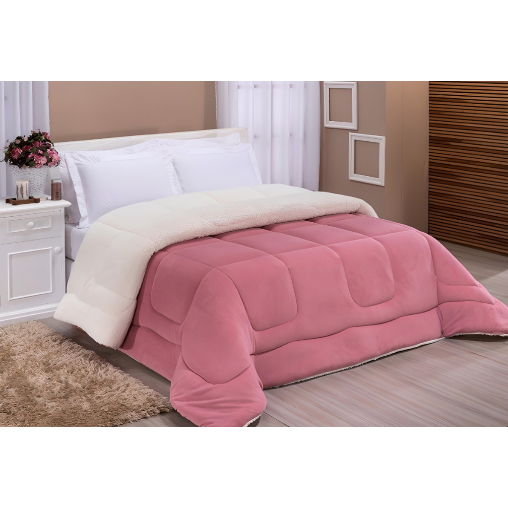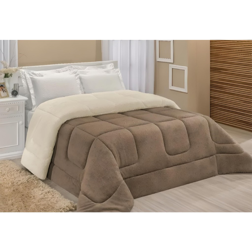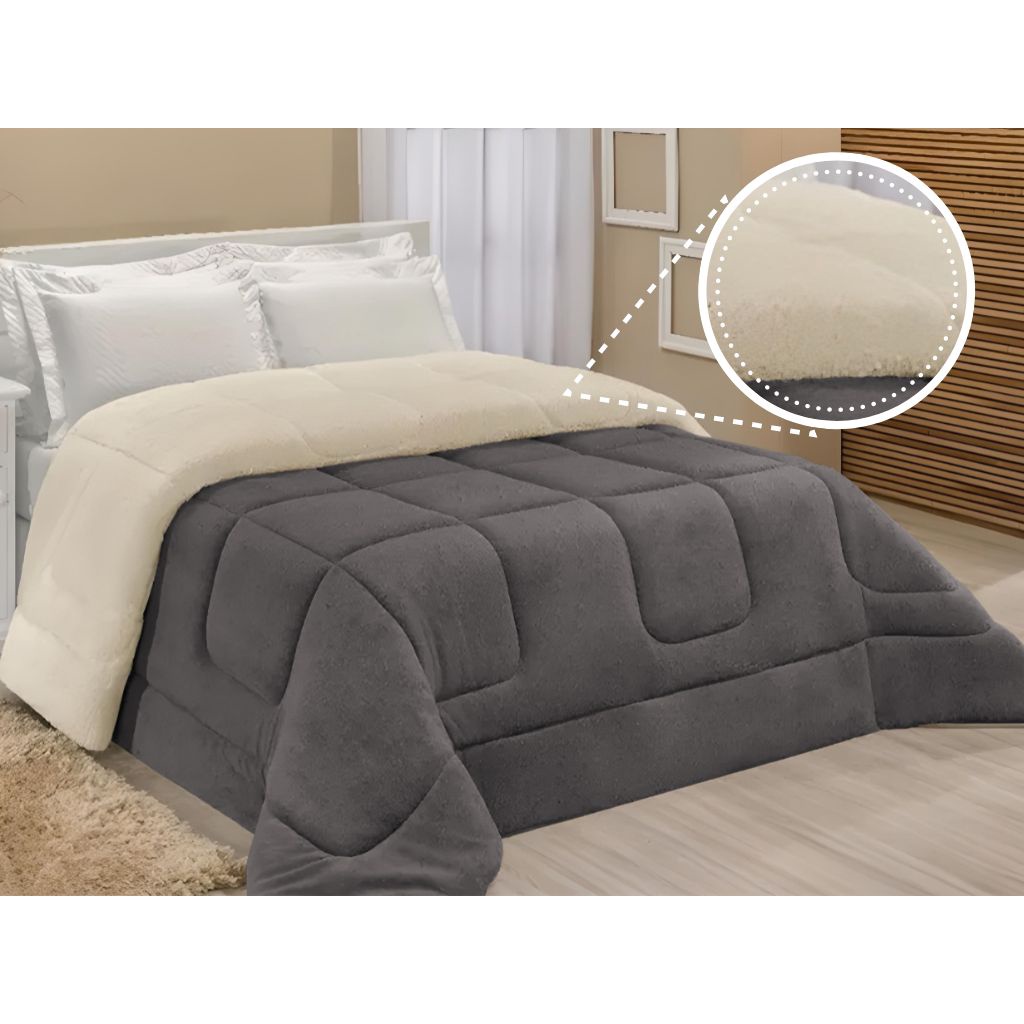 Coberdrom Casal Queen Sherpa Edredrom Pele de Carneiro Cinza 2,40m x 2,20m