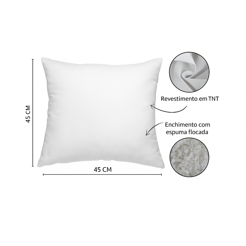 Kit com 4 Refil Enchimentos para Almofadas 45x45cm Flcos de Espuma