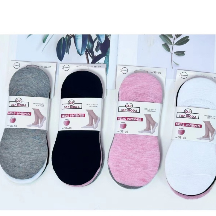 Kit 12/6 pares Meias Invisíveis Femininas Antiderrapantes unico 35-40