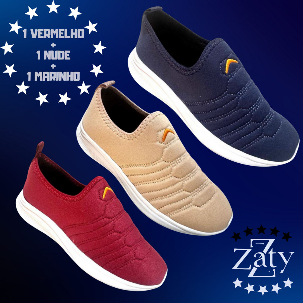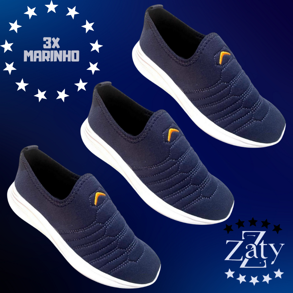 kit 3 Tênis feminino Calce Fácil Meia Macio Esportivo Antiderrapante Masculino Leve Caminhada