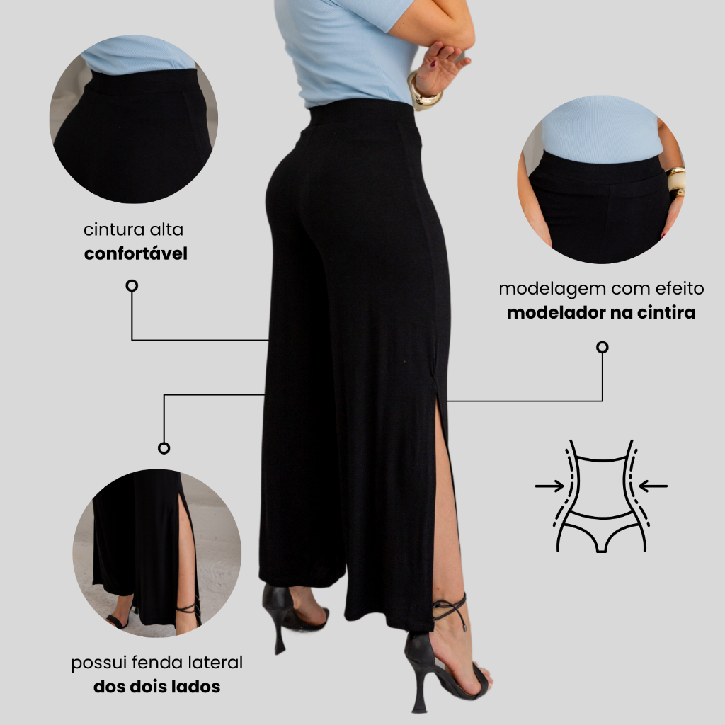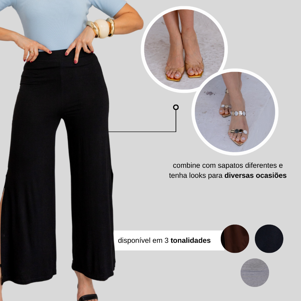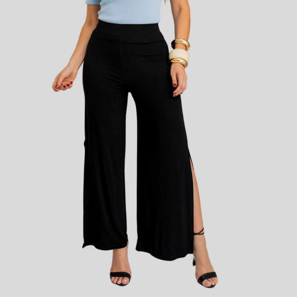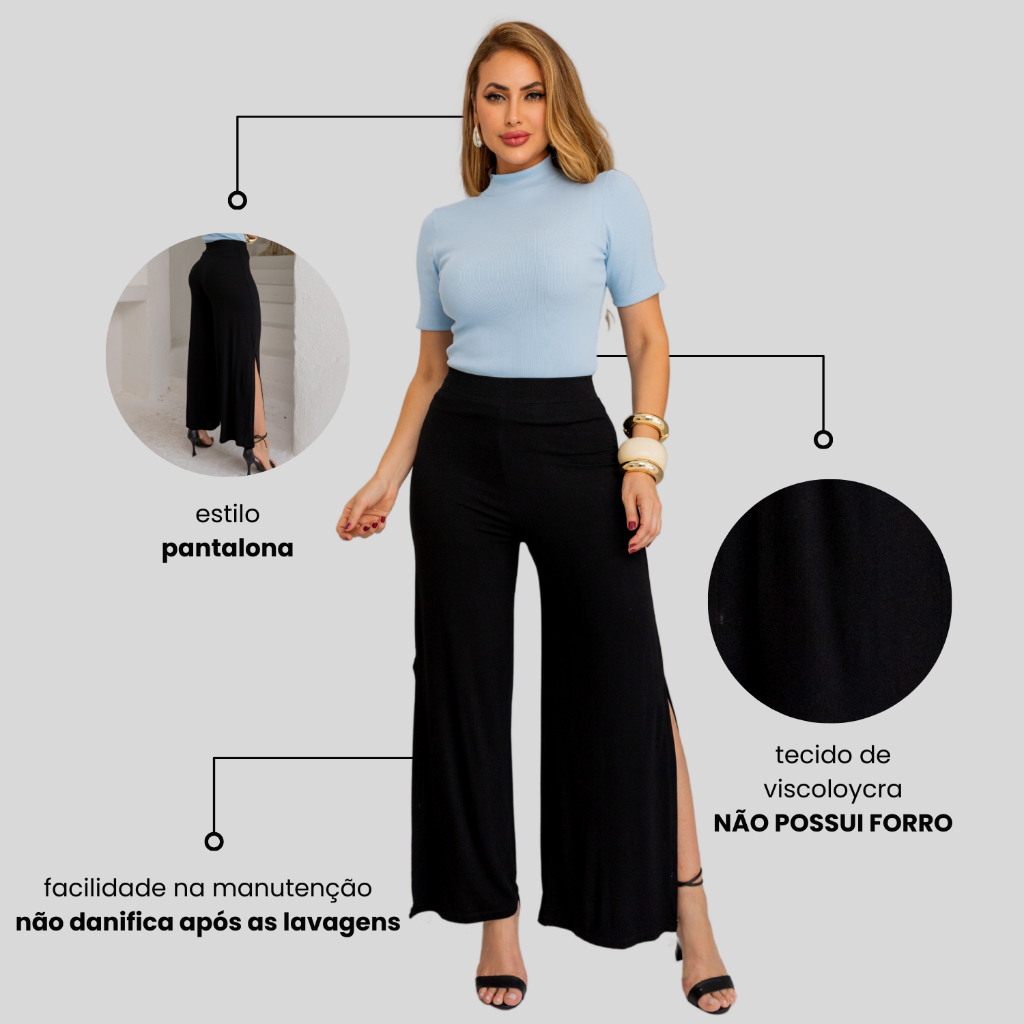Calça Pantalona Com Fenda Lateral Feminina e Estilosa