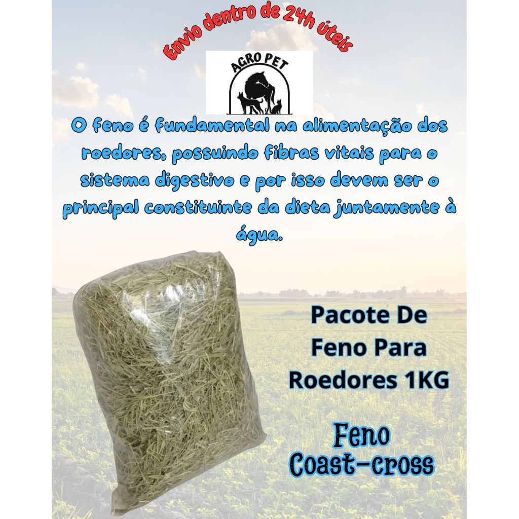 1KG FENO PARA COELHOS, PORQUINHO DA INDIA, CHINCHILA, HAMSTERS E DEMAIS ROEDORES.