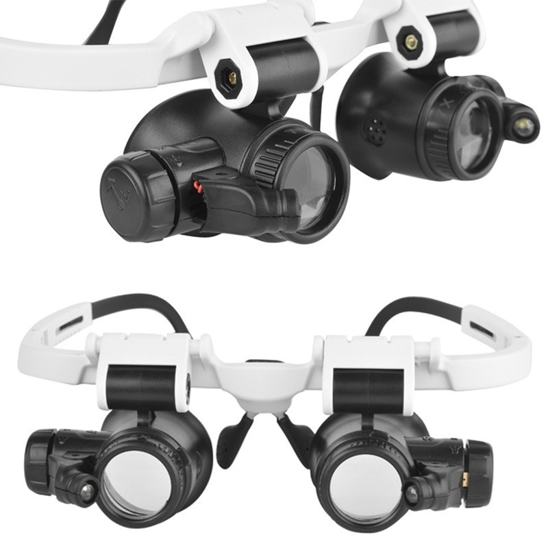 Lupa De Óculos 9892H-1 Com Luzes DUPLA LED Pequena Manutenção De Máquinas Montada Na Cabeça Raio de Ação Cirúrgico