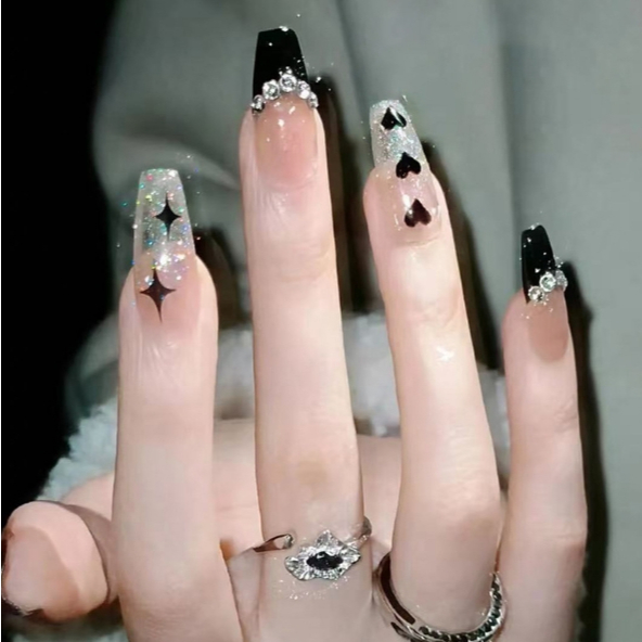 Unhas Postiças Naturais Com Strass Longos Bailarina Brilhante Arte De Unha