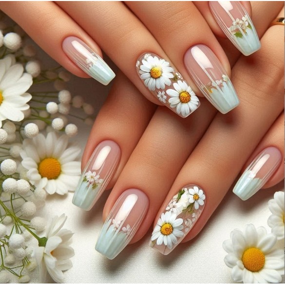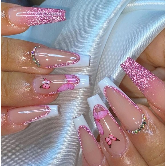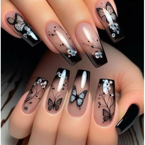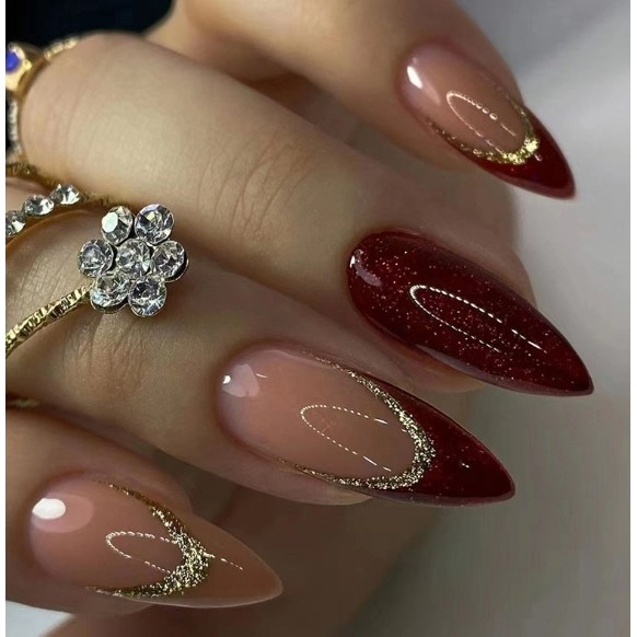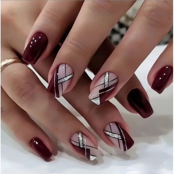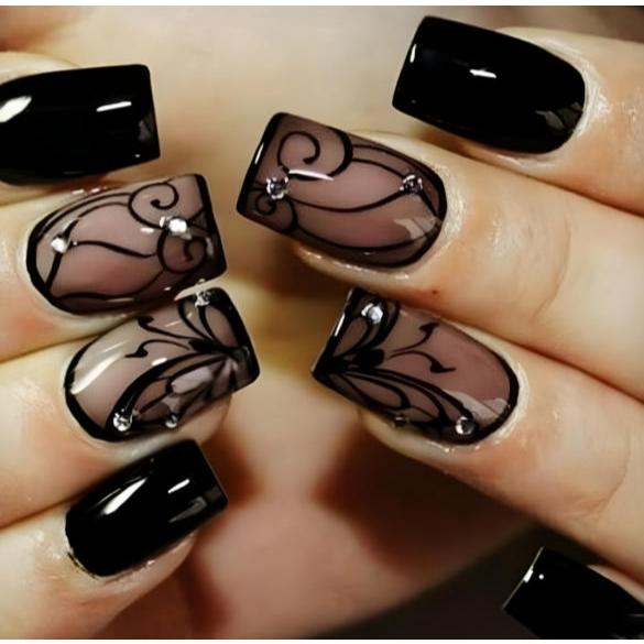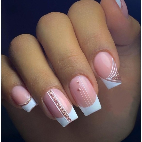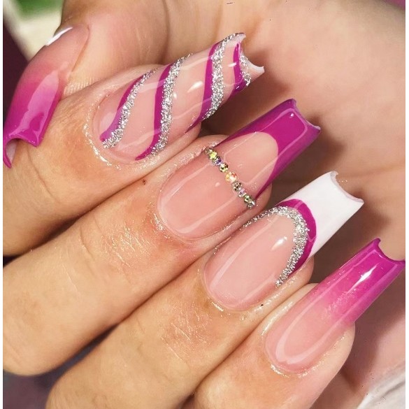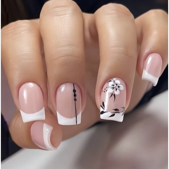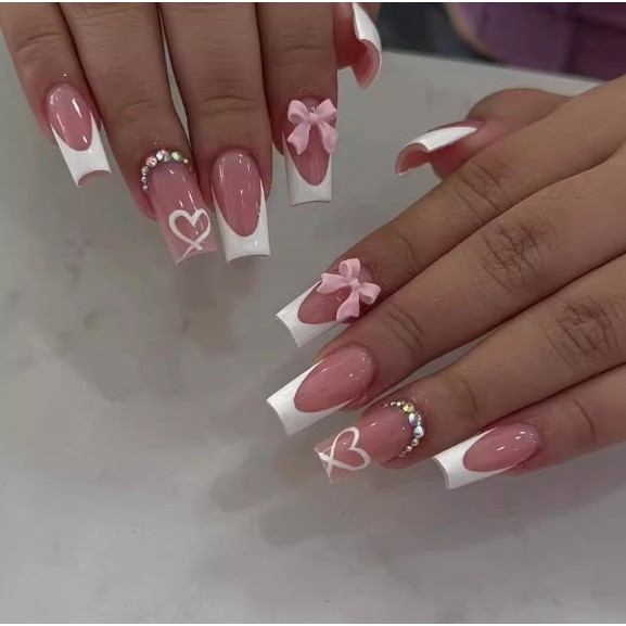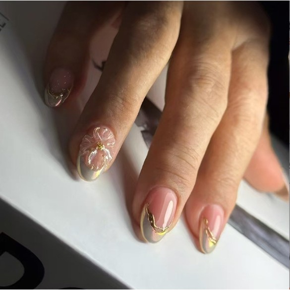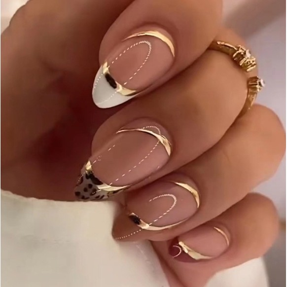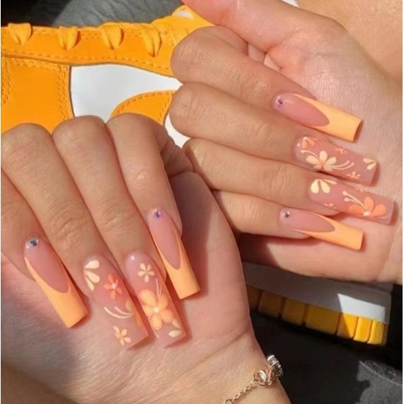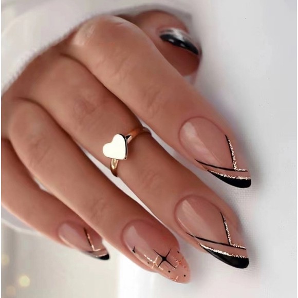 unha postiça realista amendoada decoradas quadrada Curta Diárias Com Cola unhas postiças decoradas