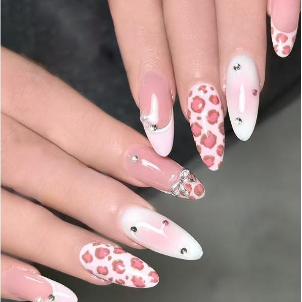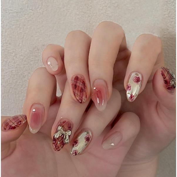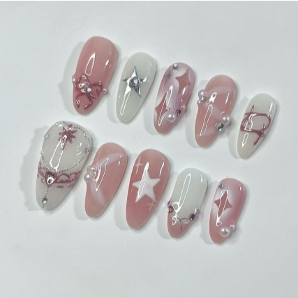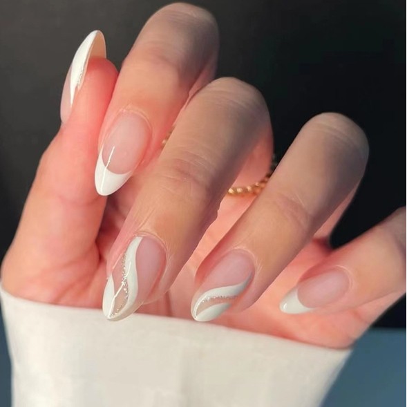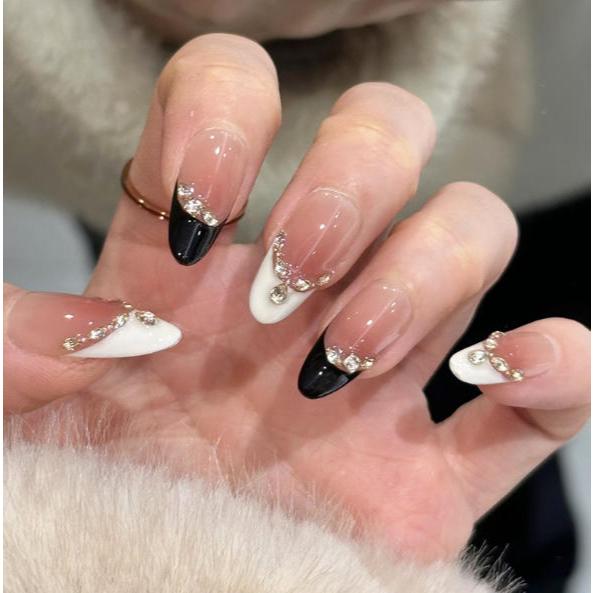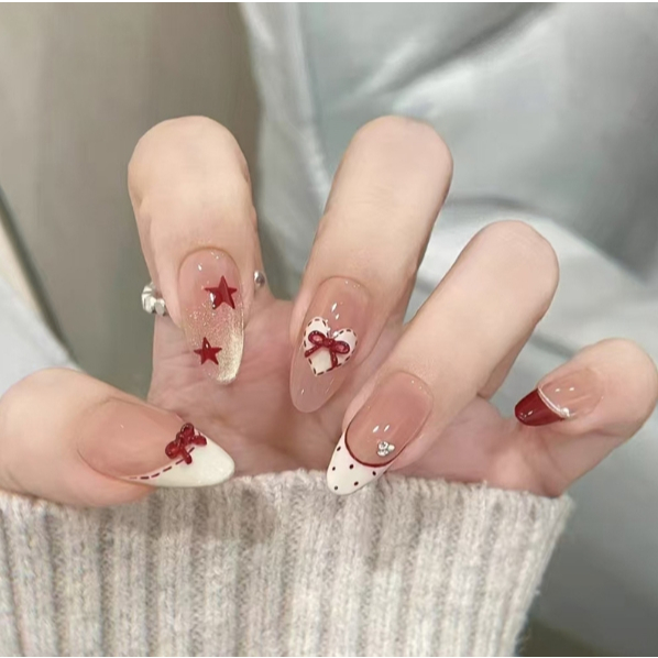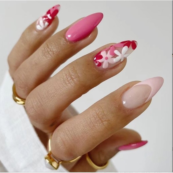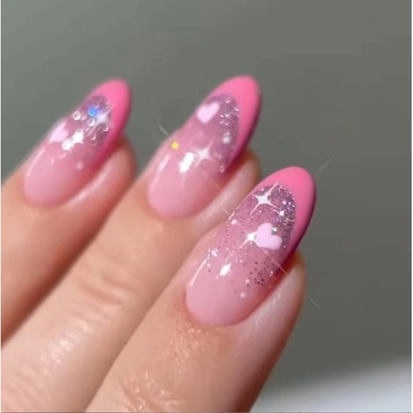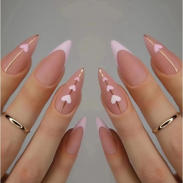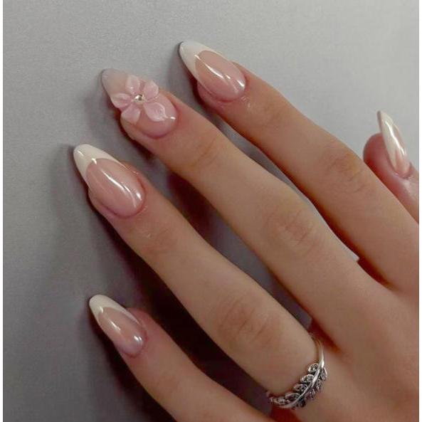 unha postiça amendoada realista francesinha Natural Com Cola media unhas Falsas nails pintada unhas postiças decoradas