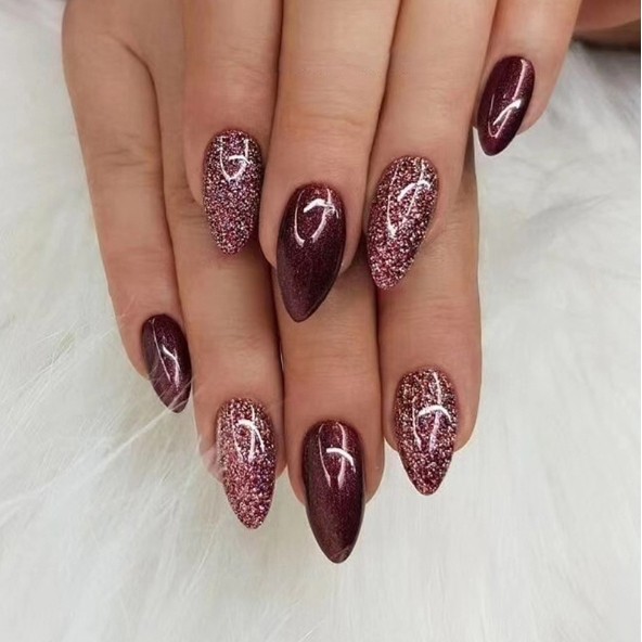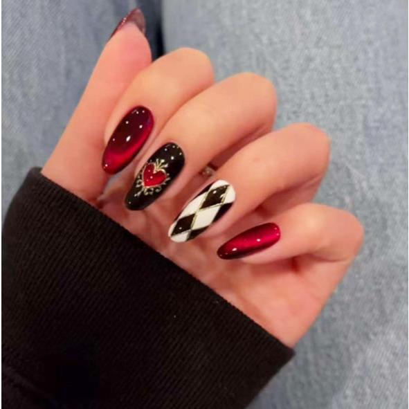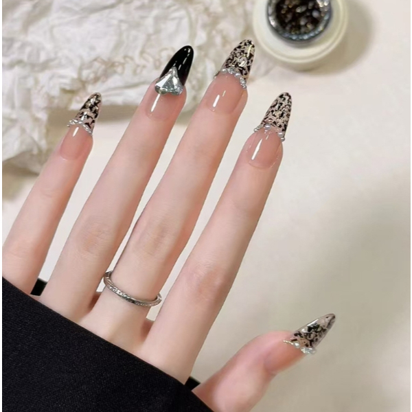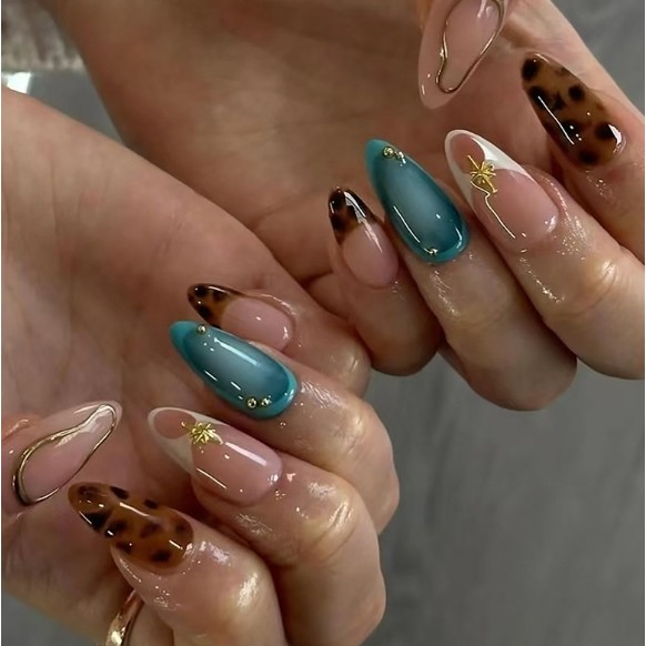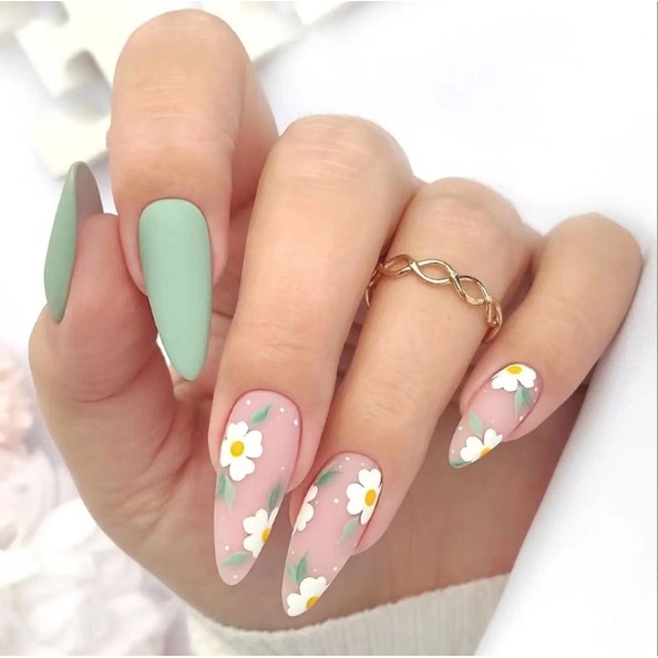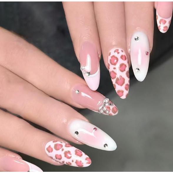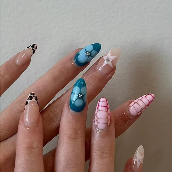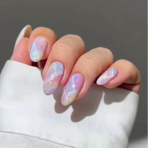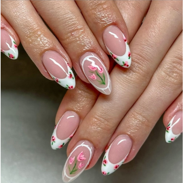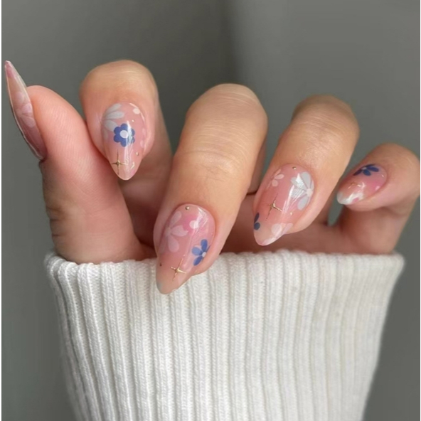 unha postiça amendoada realista francesinha Natural Com Cola media unhas Falsas nails pintada unhas postiças decoradas