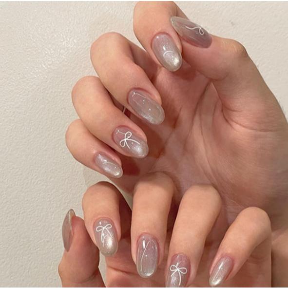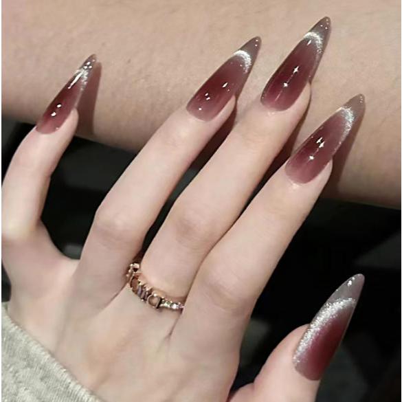 24 Peças unha postiça realista amendoada decorada Olho De Gato Com Cola