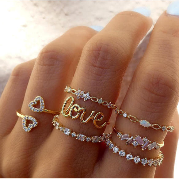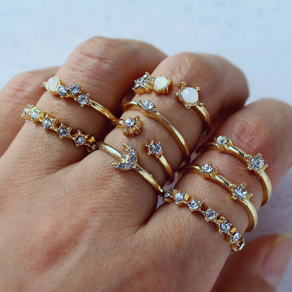 conjunto de anel aço inoxidável feminino kit anel Românticos Anel Estrela Lua Com Diamantes
