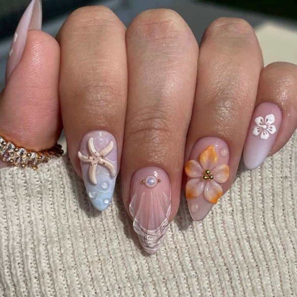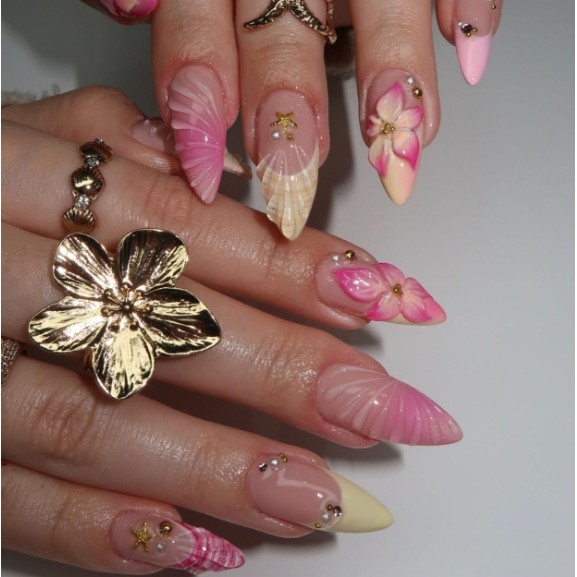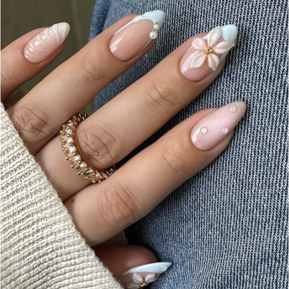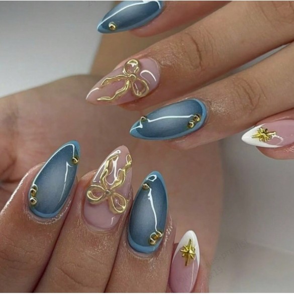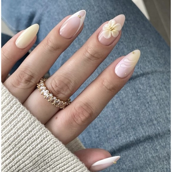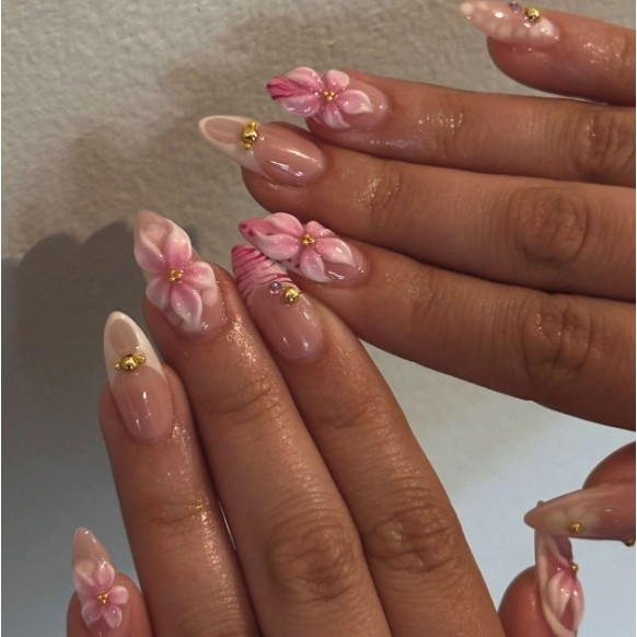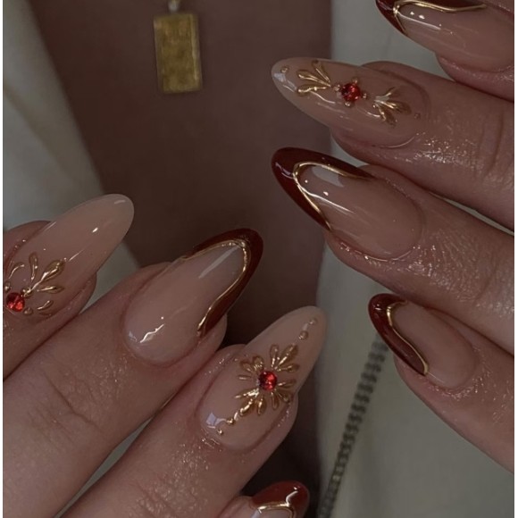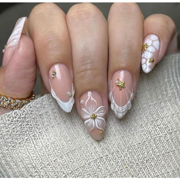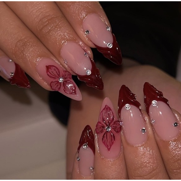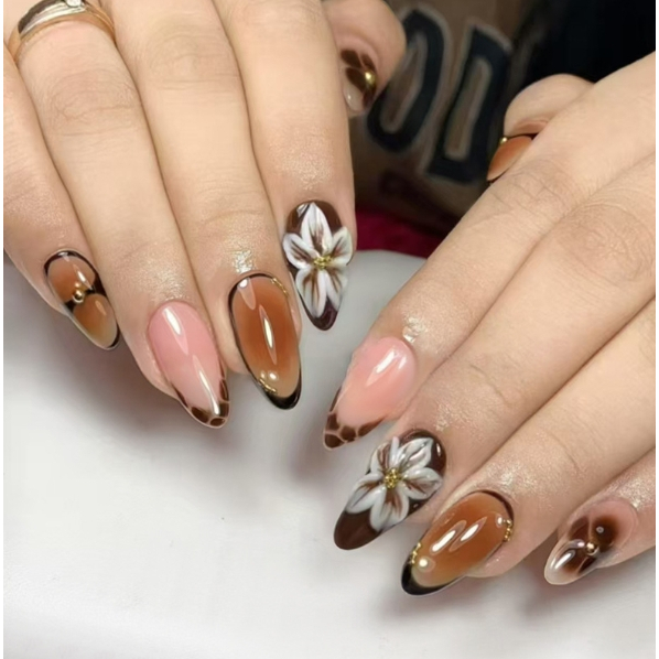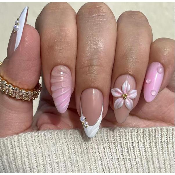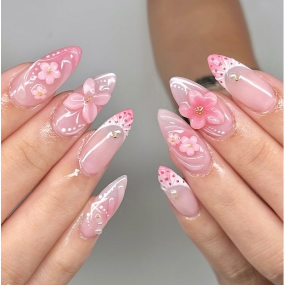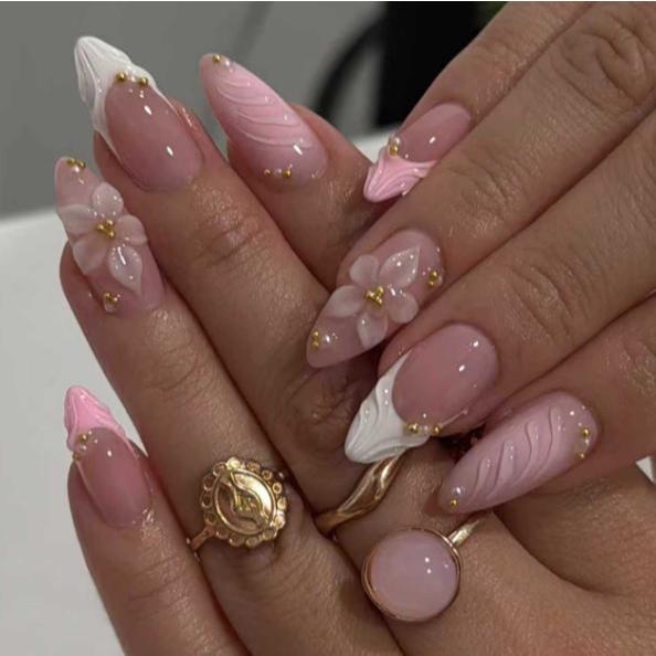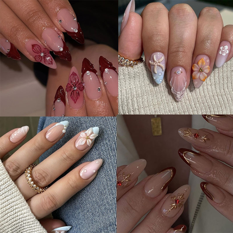 unha postiça amendoada decoradas francesinha Com Cola kit unhas postiças decoradas Elegantes Floral