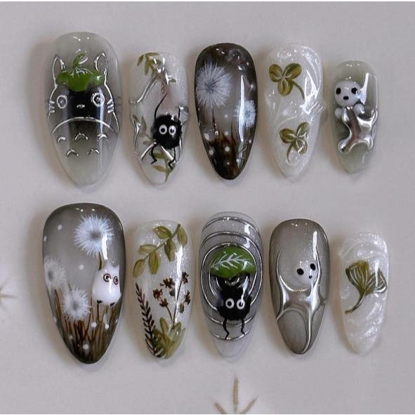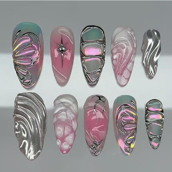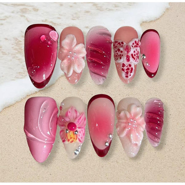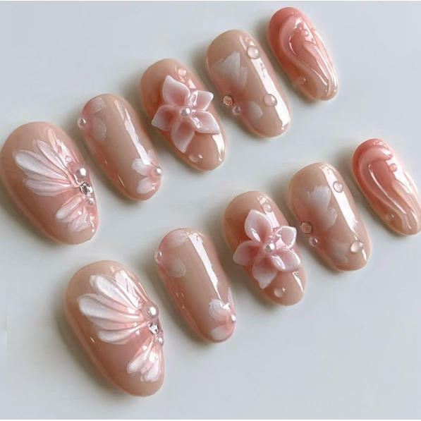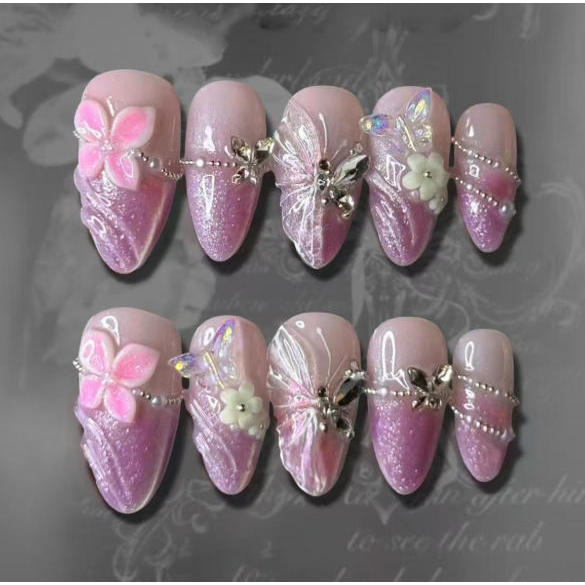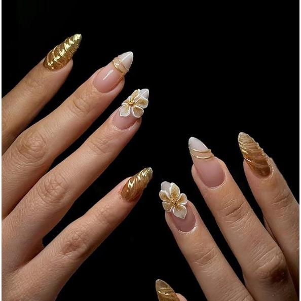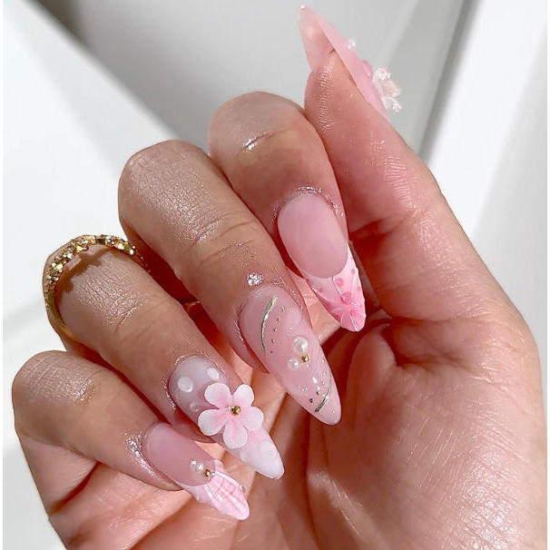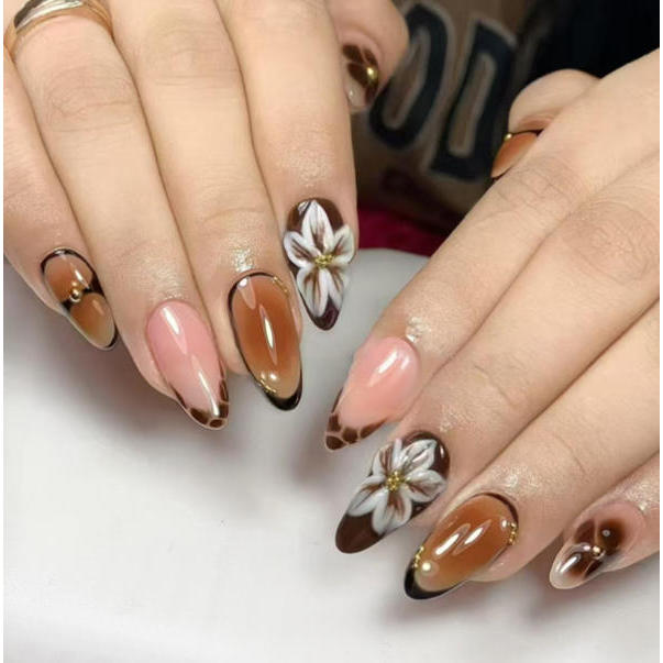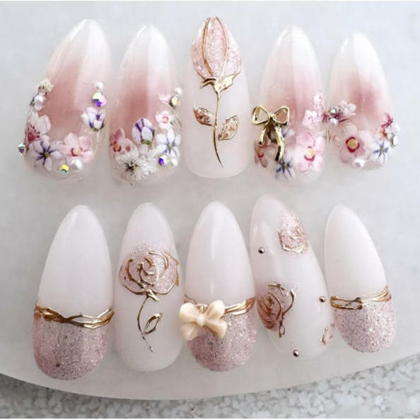 unha postiça decorada realista amendoada Floral Com Cola kit unhas postiças decoradas nails