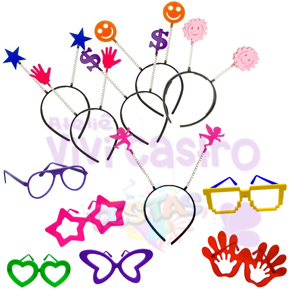 Kit Festa Balada 10 Oculos + 10 Tiaras Casamento Debutante Rave Aniversário Carnaval Adereços Atacado