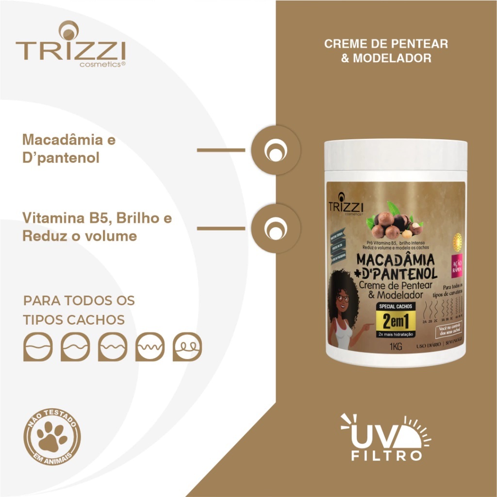 Creme de Pentear e Modelador 2 em1 Macadâmia + D' Pantenol 1 Kg Trizzi
